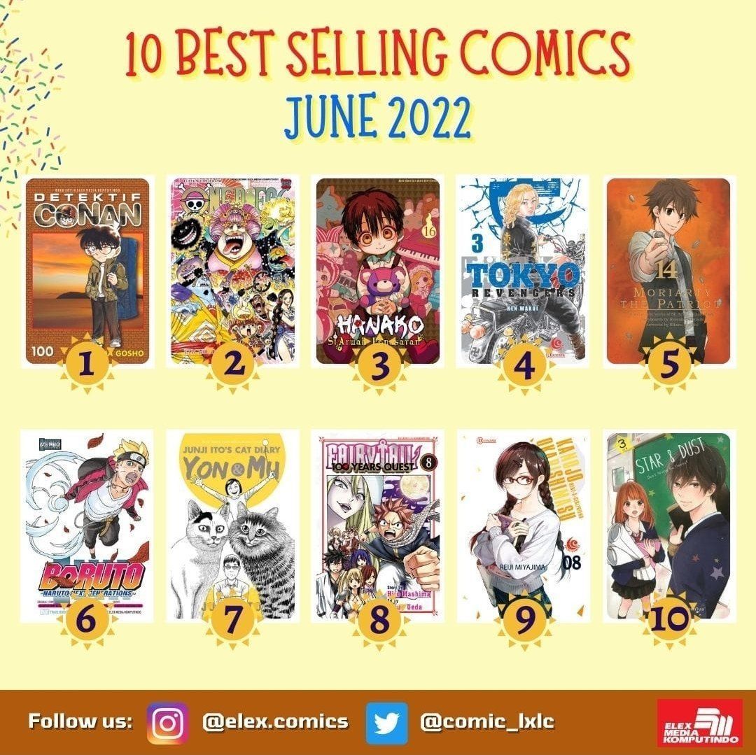Melalui akun media sosialnya, penerbit Elex Media Komputindo telah memublikasikan judul-judul komik best seller terbitan mereka selama bulan Juni 2022. Inilah komik-komik Best Seller Elex Media Juni 2022: