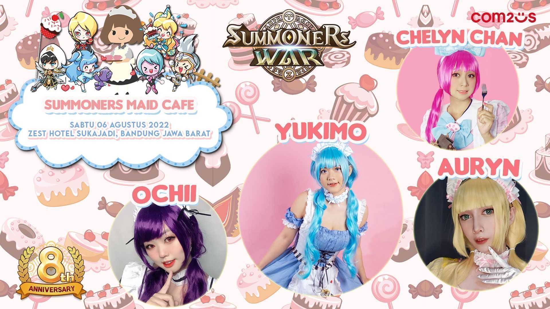 Summoners Maid Cafe menghadirkan 4 orang maid yang merupakan para cosplayer terkenal dari berbagai daerah. Di acara ini para cosplayer tersebut bertransformasi menjadi karakter monster yang ada di Summoners War. Cosplayer dari DKI Jakarta, Yukimo, bercosplay menjadi Anavel. Dua cosplayer yang berasal dari Bogor, yaitu Ochii dan Chelyn Chan menjadi Nicki dan Rica. Serta yang terakhir adalah cosplayer dari kota Bandung sendiri yaitu Auryn yang bercosplay sebagai Lora.