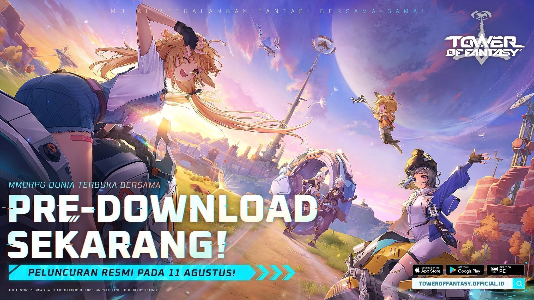 Game open-world MMORPG karya penerbit Level Infinite dan pengembang Hotta Studio, Tower of Fantasy, telah tersedia untuk diunduh lebih dulu melalui situs resmi, App Store, dan Google Play mulai 10 Agustus 2022 pukul 07:00 WIB, serta dapat mulai dimainkan secara gratis mulai 11 Agustus 2022 pukul 07:00 WIB.