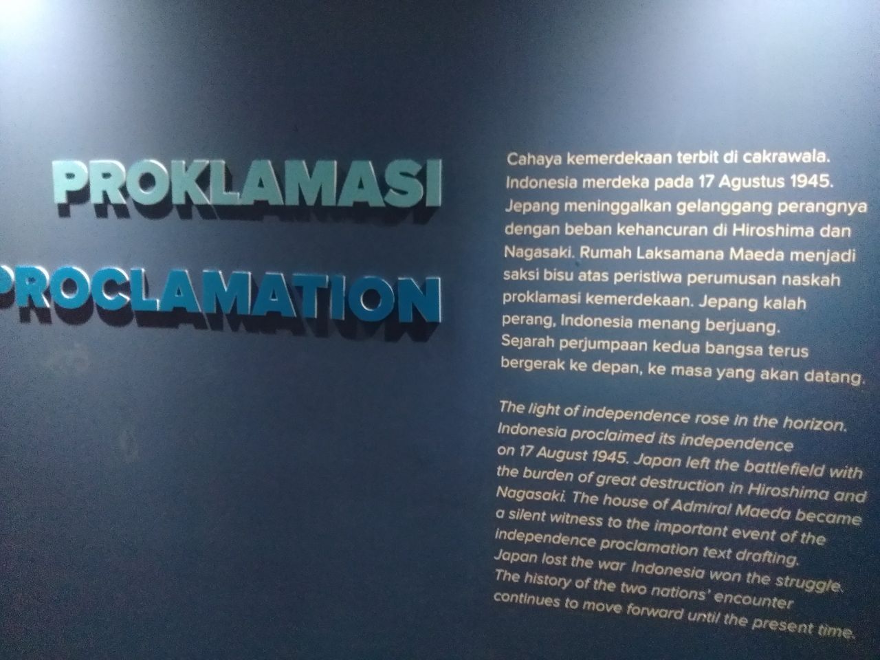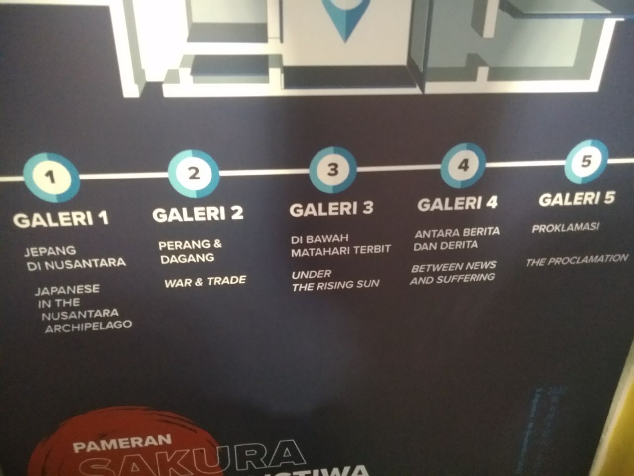 Pameran Sakura di Khatulistiwa dibagi dalam lima area yang masing-masing mewakili era sejarah orang-orang Jepang di Indonesia pra kemerdekaan. Dimulai dengan area Jepang di Nusantara yang mengisahkan tentang awal mula kedatangan orang Jepang, yang umumnya merupakan tentara bayaran VOC, hingga kedatangan kaum wanita penghibur yang dikenal sebagai kaum Karayuki. Area kedua yakni Perang dan Dagang menceritakan aktivitas ekonomi orang-orang Jepang di Indonesia yang sempat marak di awal abad 20, sebelum Perang Dunia Kedua. Area ketiga yakni Di Bawah Matahari Terbit menceritakan era penjajahan Jepang di Indonesia, sebuah era yang singkat namun penuh dengan kepiluan bagi bangsa Indonesia. Namun di balik itu semua, era penjajahan Jepang juga sarat dengan propaganda, baik dari pihak penjajah Jepang yang berusaha mengambil hati bangsa Indonesia, maupun propaganda dari kaum pejuang anti Jepang yang mencoba mengekspos penindasan-penindasan yang dilakukan oleh penjajah Jepang. Fenomena propaganda ini sendiri diangkat dalam area keempat yang bertajuk Antara Berita dan Derita. Kemudian area kelima bertajuk Proklamasi, tentu saja mengangkat peristiwa detik-detik Proklamasi Kemerdekaan setelah Jepang menyatakan menyerah kalah perang. Tentu saja satu hal yang tak boleh dilupakan adalah bahwa Museum Perumusan Naskah Proklamasi sendiri dulunya adalah rumah seorang perwira Jepang, Laksamana Tadashi Maeda yang turut memberikan tempat di rumahnya kepada para pemimpin-pemimpin bangsa Indonesia dalam merumuskan naskah proklamasi Kemerdekaan.