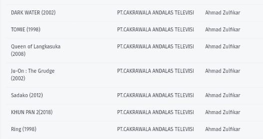 Stasiun televisi ANTV tengah berencana untuk menayangkan sejumlah film horor asal Jepang. Berdasarkan data dari Lembaga Sensor Film (LSF), setidaknya terdapat 8 judul film asal Jepang yang sudah didaftarkan oleh pihak ANTV. Inilah film-film tersebut: