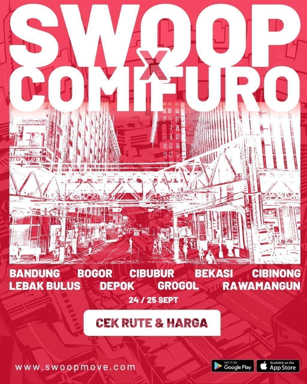 Kali ini, Swoop sebagai salah satu platform mobilitas responsif berbasis ride-share yang menyediakan transportasi terjangkau, aman, nyaman dan dapat diandalkan untuk mobilitas sehari-hari dengan kendaraan berkapasitas medium (12-19 tempat duduk) turut menawarkan layanan mereka bagi yang ingin mengunjungi Comiuro 15 di ICE BSD. Swoop memastikan bahwa jalur khusus menuju ICE BSD City tersebut akan dibuka selama dua hari, yakni dari tanggal 24 hingga 25 September.