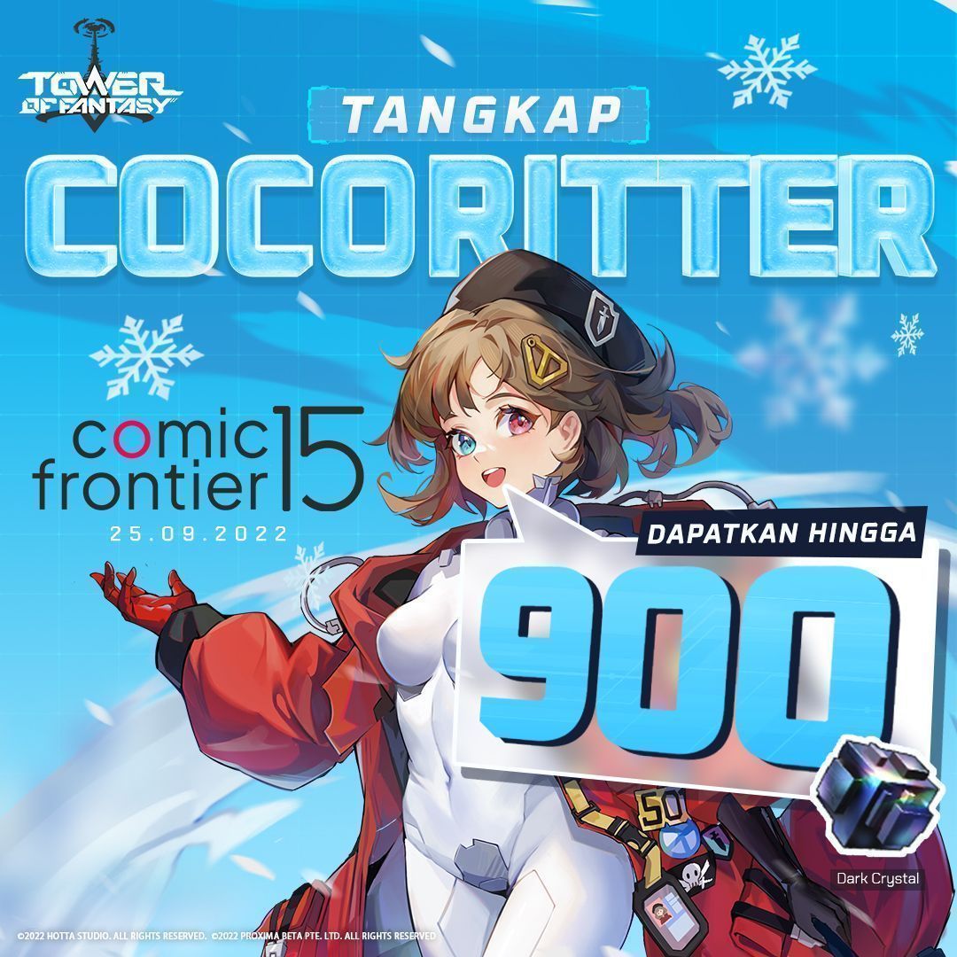 Khusus Hari Kedua (25 September) akan ada event “Tangkap Cocoritter”, berhadiah masing-masing 900 Dark Crystals untuk 30 Wanderer beruntung yang berfoto dengan cosplayer Cocoritter. Pemenang yang beruntung akan dihubungi langsung melalui DM Instagram Tower of Fantasy Indonesia.