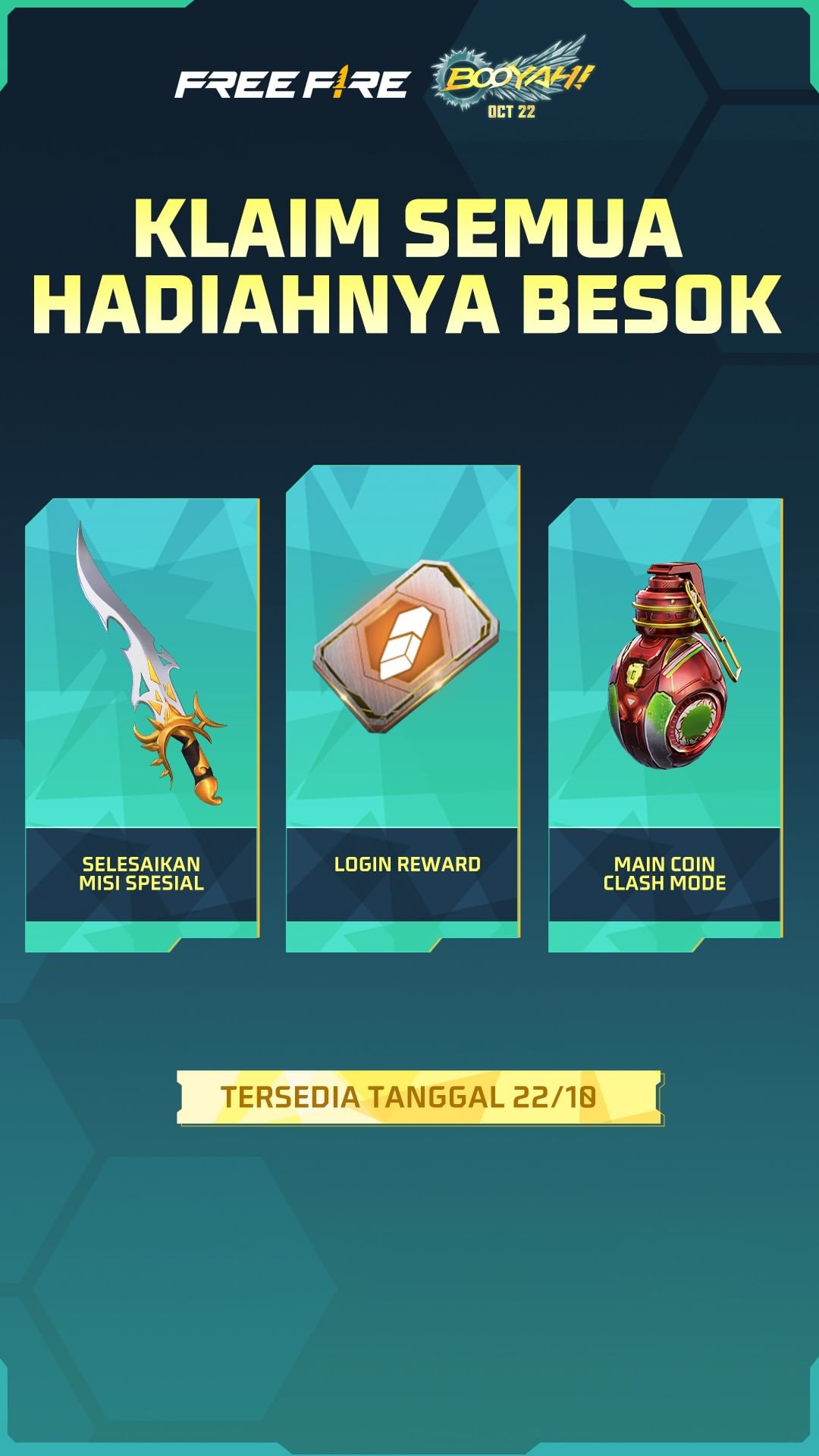Free Fire hadirkan beragam hadiah dan kejutan menarik yang siap menyambut para pemain pada puncak Booyah Day 2022 pada tanggal 22 Oktober 2022. Mulai dari kolaborasi video musik terbaru dengan idol JKT48 dan berbagai karakter populer di Free Fire, mode permainan terbaru, special login, hingga berbagai hadiah menarik bisa didapatkan para pemain di dalam Booyah Day 2022.
