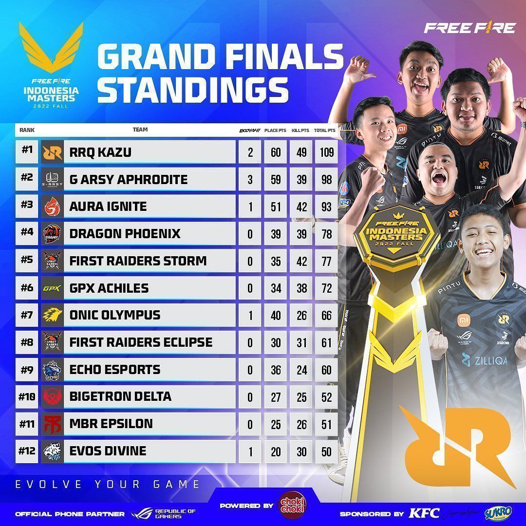 Congrats buat RRQ Kazu yang menjadi juara baru di Free Fire Indonesia Masters 2022 Fall and Good Luck For Free Fire World Series 2022.