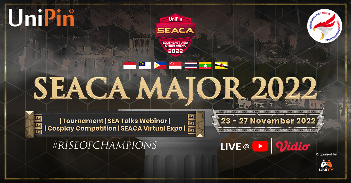 Salah satu turnamen esports terbesar di Asia Tenggara, Southeast Asia Cyber Arena (SEACA) yang diselenggarakan oleh UniPin kembali digelar di tahun ini. SEACA 2022 akan menghadirkan berbagai turnamen dan rangkaian acara menarik yang dimulai pada 15 November hingga 27 November dengan total prizepool USD30,000 atau setara Rp463 juta.