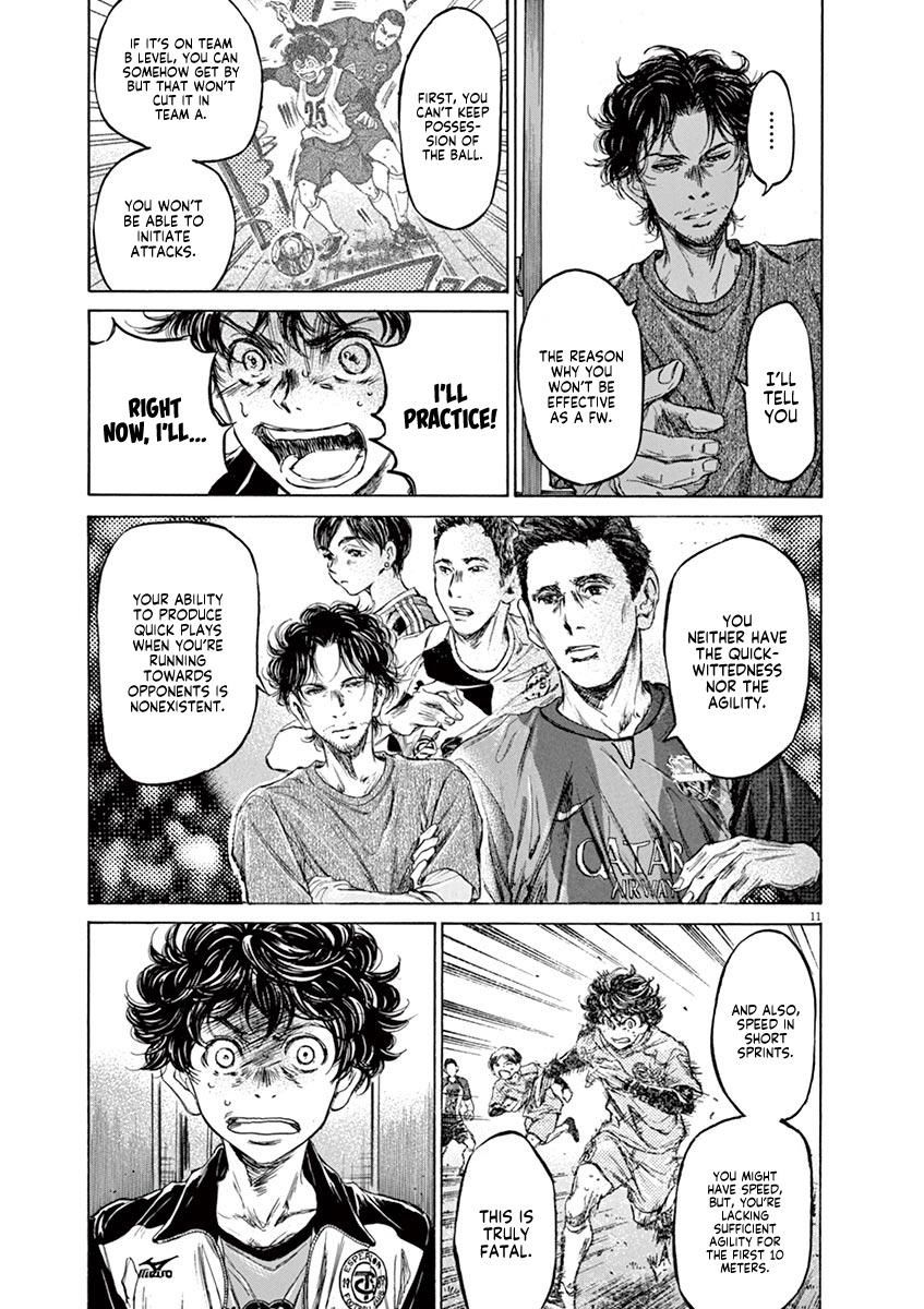 Tentunya, seorang pengeksploitasi ruang seperti Aoi tidak harus bermain di posisi fullback. Bagaimanapun juga, ada pemain seperti Thomas Muller yang mampu mengeksploitasi ruang dari posisi penyerang. Namun di sini, coach Fukuda mempertimbangkan limitasi yang dimiliki Aoi. Aoi bukanlah pemain yang cepat. Sentuhan pertama Aoi, meskipun telah mengalami peningkatan, tetap tidak mampu bersaing dengan pemain lain. Di posisi penyerang, Aoi akan mudah dihentikan karena dia kemampuan fisik dan individunya tidak sebaik pemain seperti Yoshitsune. Sementara itu di posisi fullback, dia bisa mendapatkan kesempatan menyentuh bola lebih lama dan melihat lebih jelas semua sisi lapangan.
