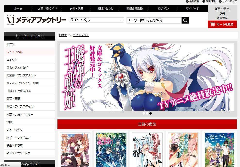 Media Factory adalah salah satu penerbit novel ringan terbesar di Jepang dan dimiliki sepenuhnya oleh perusahaan media Kadokawa. Sejumlah novel ringan populer seperti Madan no Ou to Vanadis, Boku wa Tomodachi ga Sukunai, dan Hidan no Aria.