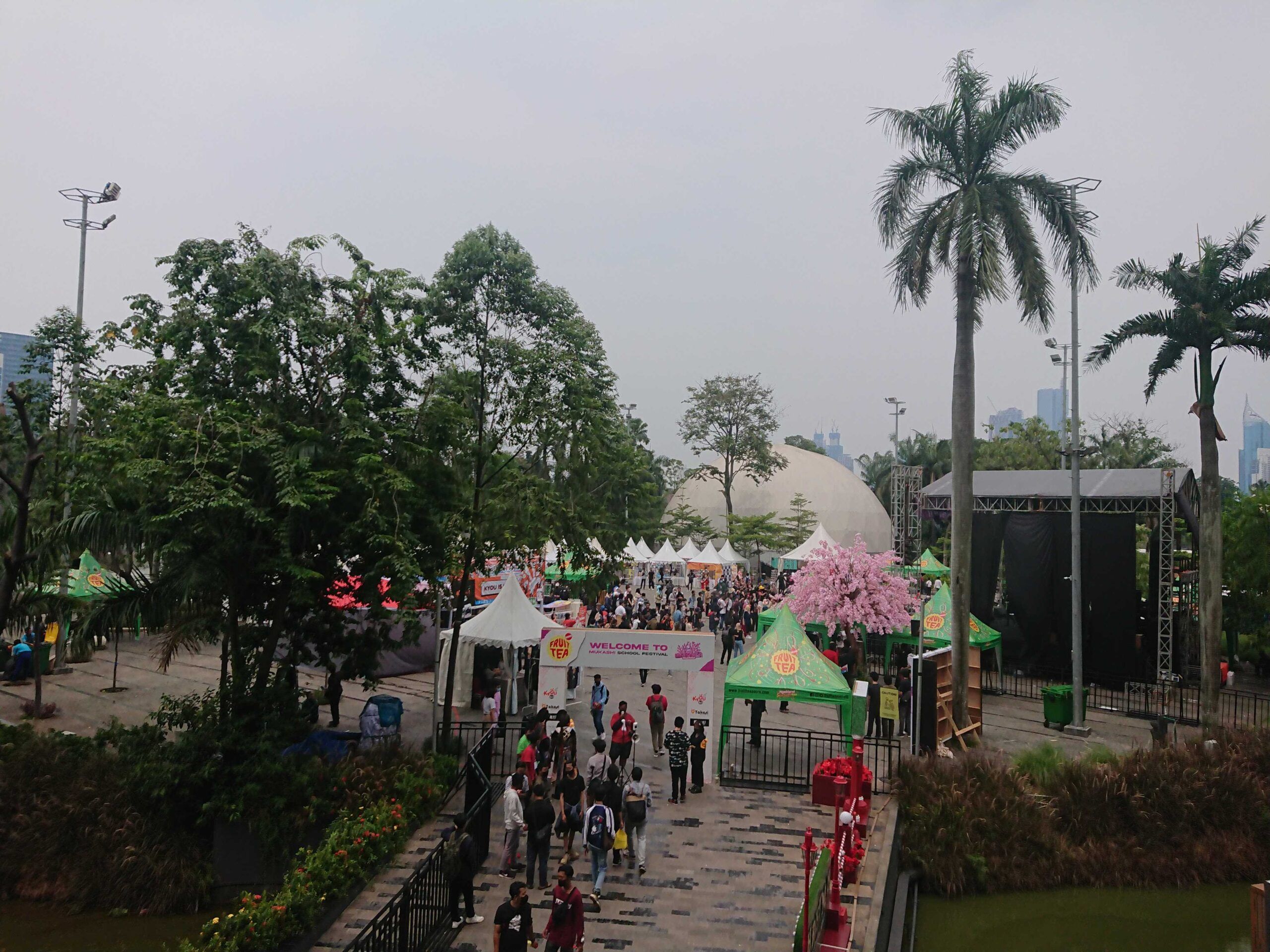 Di area main stage ini pun juga tidak hanya panggung saja yang menjadi sajian utama dari event Mukashi ini. Di sini juga ada booth Kyou Hobby Shop yang mengadakan tantangan untuk para pengunjung dengan mencetak skor tertinggi di gim Genshin Impact langsung di depan Booth tersebut. Jika pengunjung berjalan ke sisi kanan, banyak stand makanan dan minuman ala jejepangan yang sudah berderet untuk menyiapkan pasokan bagi para pengunjung yang kelaparan. Hal ini juga menjadi sorotan penting di Mukashi Festival ini. Kenapa? Karena di belakang Stand makanan dan minuman itu kita langsung menghadap ke danau buatan di Senayan Park Mall, sehingga ada sedikit konsep berbaur dengan alam yang dihadirkan di event ini.