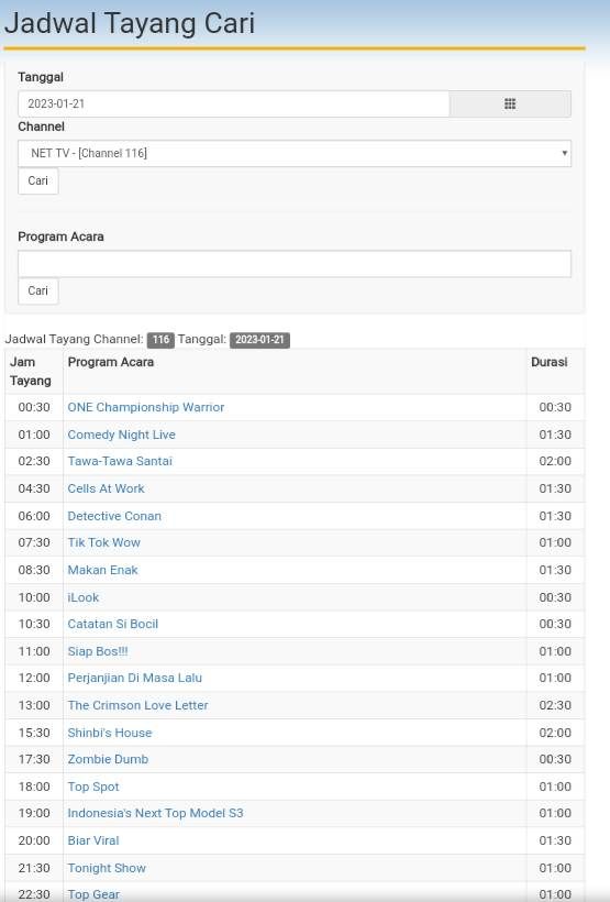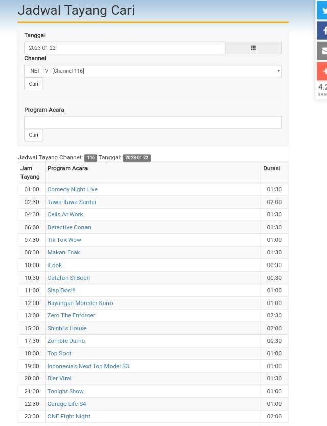 Detektif Conan saat ini tengah ditayangkan secara rutin di stasiun televisi NET. Anime ini saat ini ditayangkan setiap hari pukul 14.00 WIB dan Sabtu-Minggu pukul 06.00 WIB. Sebelumnya sempat terungkap juga bahwa NET akan menayangkan 5 judul movie layar lebar Detektif Conan. Kelima movie tersebut adalah Sunflower Of Inferno, The Darkest Nightmare, The Crimson Love Letter, Zero The Enforcer, dan The Fist Of Blue Sapphire.