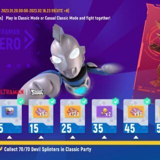 Ikuti event gold pass untuk mendapatkan atribut dan skin bertemakan Ultraman Tiga. Ada juga misi hancurkan Gomora dan dapatkan devil splinter setelah menghancurkannya, kumpulkan 77 devil splinter untuk mendapatkan skin Epic Ultraman Z.