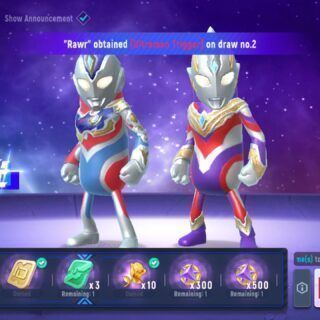 Bagi yang suka gacha, ada gacha special berhadiah skin Legendary Ultraman Trigger dan Ultraman Decker yang bisa berubah form. Ada juga special fantastic box yang berhadiah skin unicorn Ultraman Zero Ultimate Shining berserta weapon unicorn Ultimate Zero Sword, di dalam rainbow box juga ada skin Ultraman Geed, Ultraman Trigger First, Ultraman Orb dan emote Ultraman Z. Selain itu, di Februari nanti juga ada event untuk mendapatkan senjata khusus Ultraman. Gim ini dapat di-download di platform Android dan iOS.