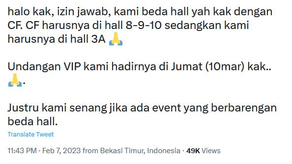 halo kak, izin jawab, kami beda hall yah kak dengan CF. CF harusnya di hall 8-9-10 sedangkan kami harusnya di hall 3A 🙏