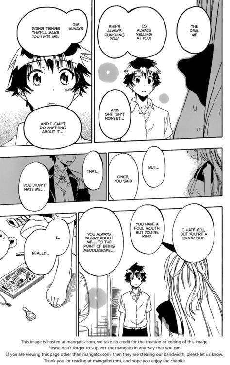 Tidak perlu bertentangan dengan elemen tsundere, Chitoge juga bisa jujur bersuara, lebih jujur dari politikus saat ini yang jaim. Kalau takut, ia katakan takut, kalau kesal, ia katakan kesal, dan kalau suka….