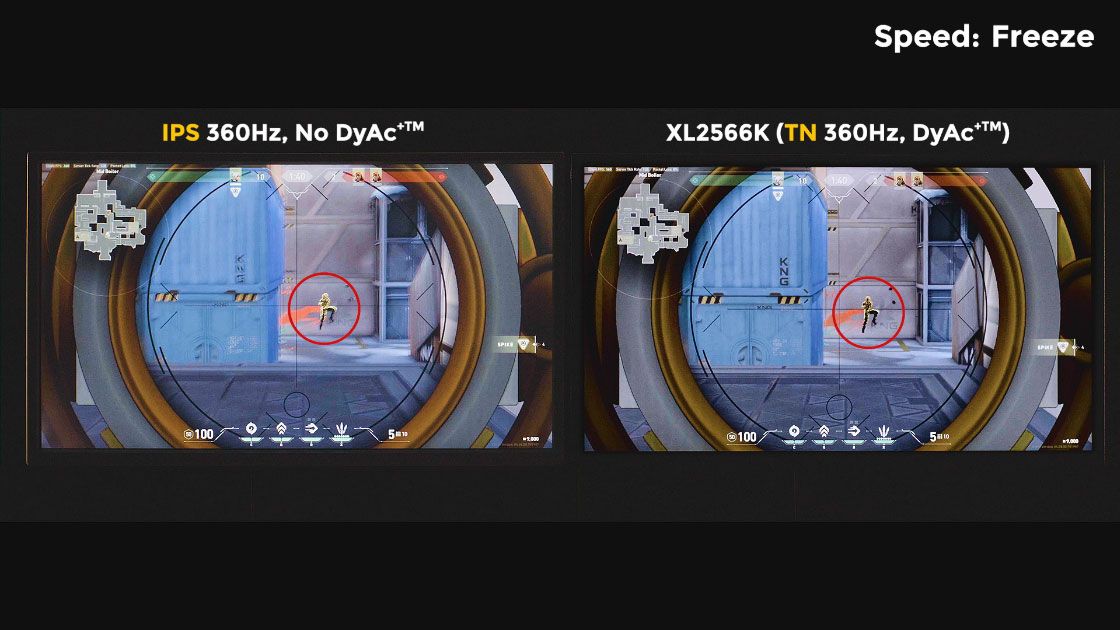 Teknologi DyAc⁺™ mengurangi gerakan blur, memberikan tampilan yang lebih jelas bagi pemain untuk membuat tembakan tepat sasaran dan mengatur recoil, sementara teknologi pengoptimalan warna Black eQualizer meningkatkan visibilitas dalam area pandang yang gelap tanpa mengekspos area terang secara berlebihan. Fitur ini membantu pemain untuk pulih dari flash bomb dan melihat menembus asap tebal. Panel TN yang cepat memungkinkan pemain untuk lebih fokus dan tidak terlalu terganggu dengan memberikan garis tajam pada target yang bergerak. Dengan fitur-fitur canggih ini, XL2566K adalah monitor yang sempurna untuk gamer hardcore yang menginginkan performa level tertinggi dan kejernihan dalam gameplay mereka.