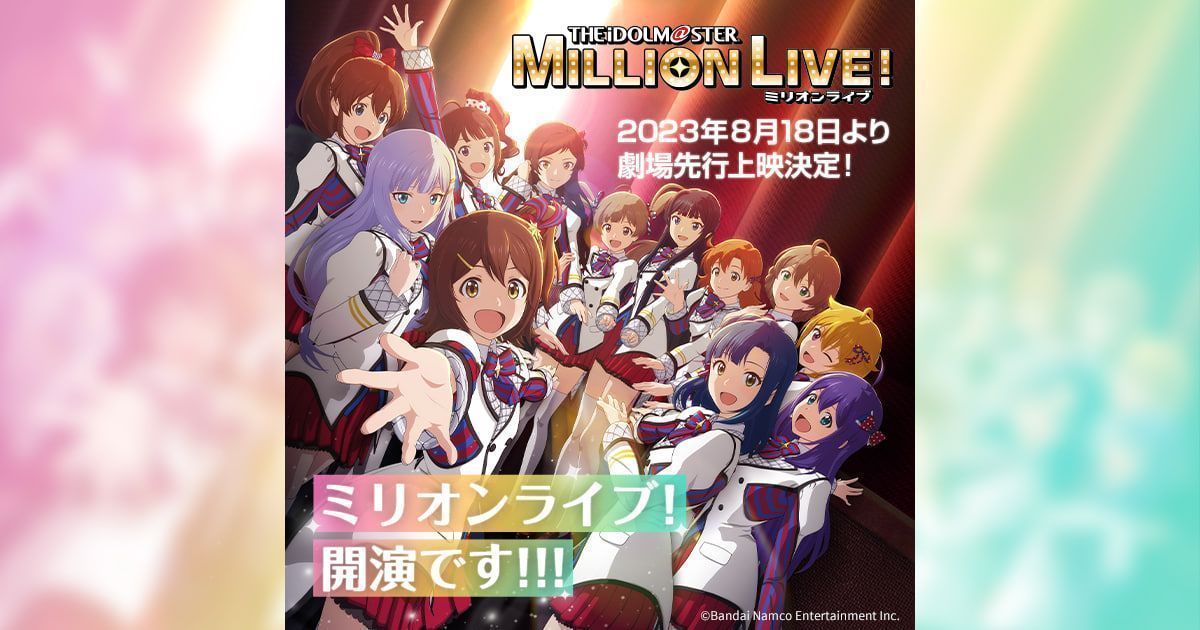 Idolm@ster Million Live sebagaimana telah diberitakan sebelumnya siap diadaptasi menjadi anime pada tahun 2023 mendatang. Menurut sutradara Shinya Watada, cerita dalam anime ini akan berfokus mengenai perjalanan karir Mirai Kasuga dan idol lainnya. Anime ini rencananya akan dirilis di Jepang pada bulan Oktober 2023 mendatang. Namun bagi yang tinggal di Jepang maka bisa menontonnya lebih awal melalui penayangan khusus di bioskop sebanyak 3 babak, yakni tanggal 18 Agustus hingga 7 September, 8 September hingga 28 September, dan 29 September hingga 19 Oktober. Intip video-video promosinya berikut ini: