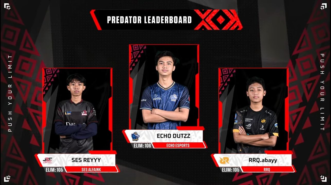 Walau EVOS Divine berhasil memuncaki klasemen di fase liga, akan tetapi klasemen Predator ditutup oleh kemenangan dari seorang ECHO DUTZZ yang berhasil memuncaki Top Predator di fase grup dengan total eliminasi sebanyak 106 kill, disusul oleh SES REYYY dan RRQ.abayy yang sama-sama mendapatkan perolehan total eliminasi yang sama yaitu 105 kill, selisih jarak yang sangat tipis sekali hanya 1 kill dari DUTZZ.