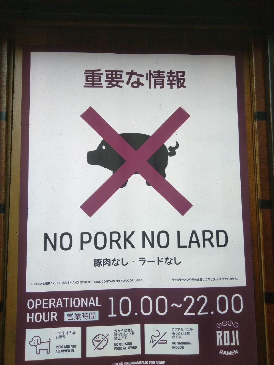 Selain itu, seperti yang sudah dijelaskan sebelumnya, yang terpenting adalah semua makanan di sini tentu saja NO PORK, NO LARD, dan NO MIRIN.