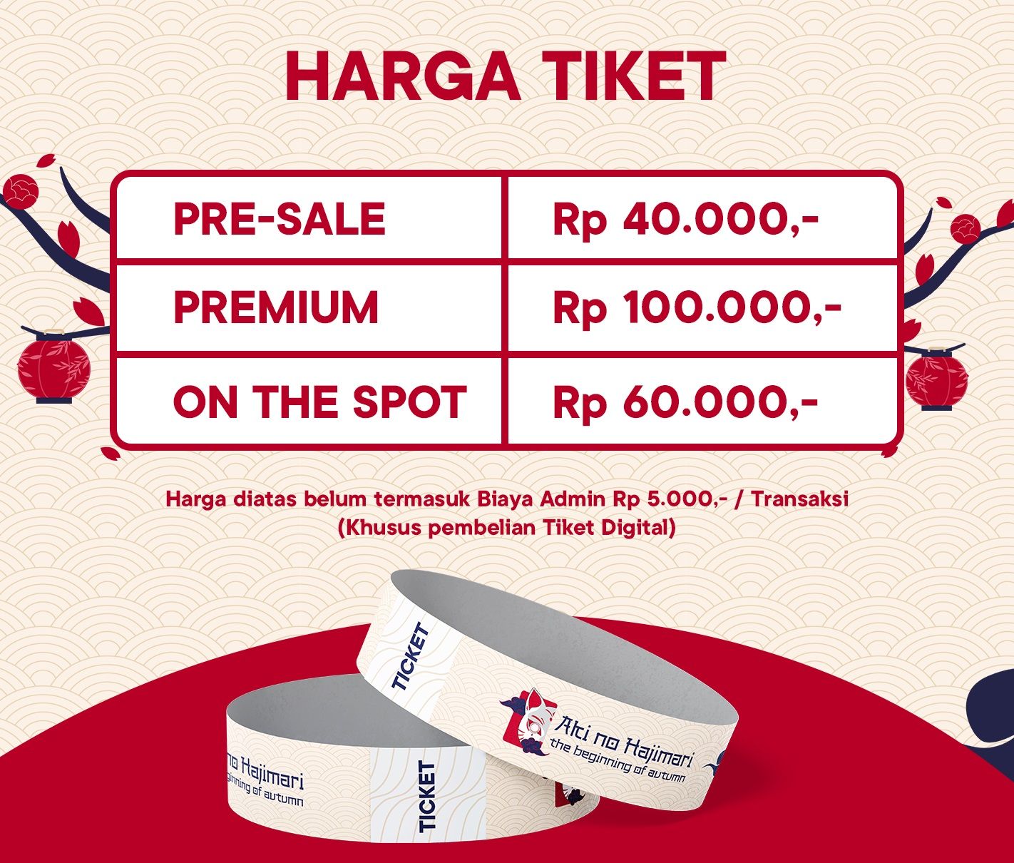 Terdapat berbagai macam pilihan tiket, mulai dari Pre-Sale, Premium hingga On The Spot. Rincian harga masing-masing tiket bisa dilihat di bawah ini: