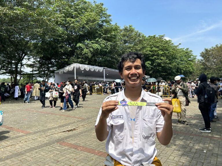 Reza telah mengantre sejak pukul 5 pagi dan telah membeli tiket online beberapa hari sebelumnya. Antrean telah cukup ramai, namun penukaran tiket baru dimulai pukul 9 pagi. Akibatnya, ia baru dapat memasuki venue pukul 10 siang.