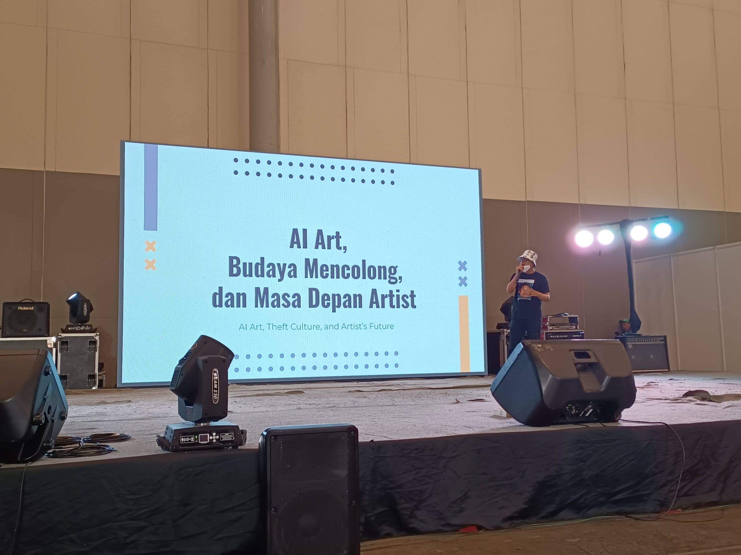 Bagaimana dengan suasana di dalam Hall 8-10 ICE? Pada hari kedua Comifuro 16, tim KAORI akhirnya berkesempatan untuk menyaksikan sesi panel pagi yang membahas fenomena dan hal menarik di ranah jejepangan. Ada 2 topik yang dibawakan pada hari tersebut, yaitu “Membuka Mata untuk Sakuga” oleh Maulana Mahardika dan “AI Budaya Mencolong, dan Masa Depan Artist” oleh Nikoruisu.