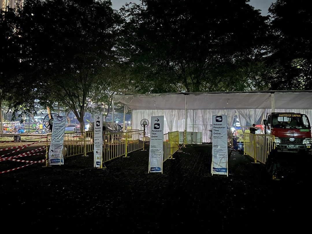 Perhelatan Comic Frontier (Comifuro) 16 hari kedua pada Minggu (7/5) ternyata masih dipadati pengunjung. Walau tidak se-hectic dan sepanjang pada hari pertama, antrian tiket yang memenuhi area parkir seberang Hall 10 Indonesia Convention Exhibition (ICE) BSD, Tangerang masih terpantau pada pagi hingga siang hari (sekitar pukul 12.00 WIB).