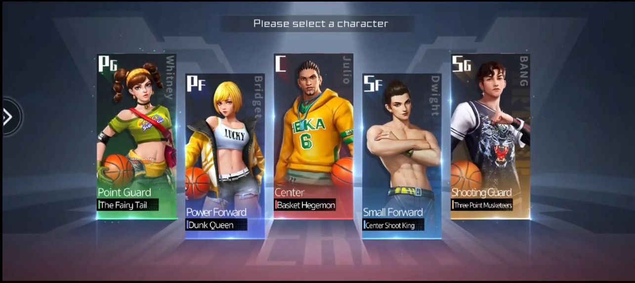 Pada saat bermain di awal (saat tutorial) pemain akan diberikan pilihan 1 dari 5 karakter yang ada dengan posisi yang berbeda-beda. Pada saat itu KAORI memilih karakter Dwight karena walaupun posisinya short forward, skill dan tingkat penggunaan karakternya mudah jika mau bermain menyerang demi mendapatkan point yang banyak.