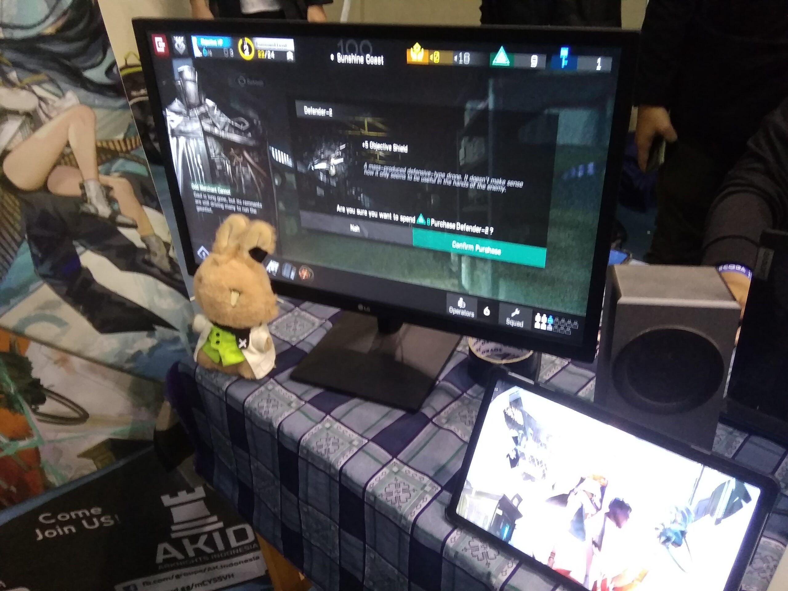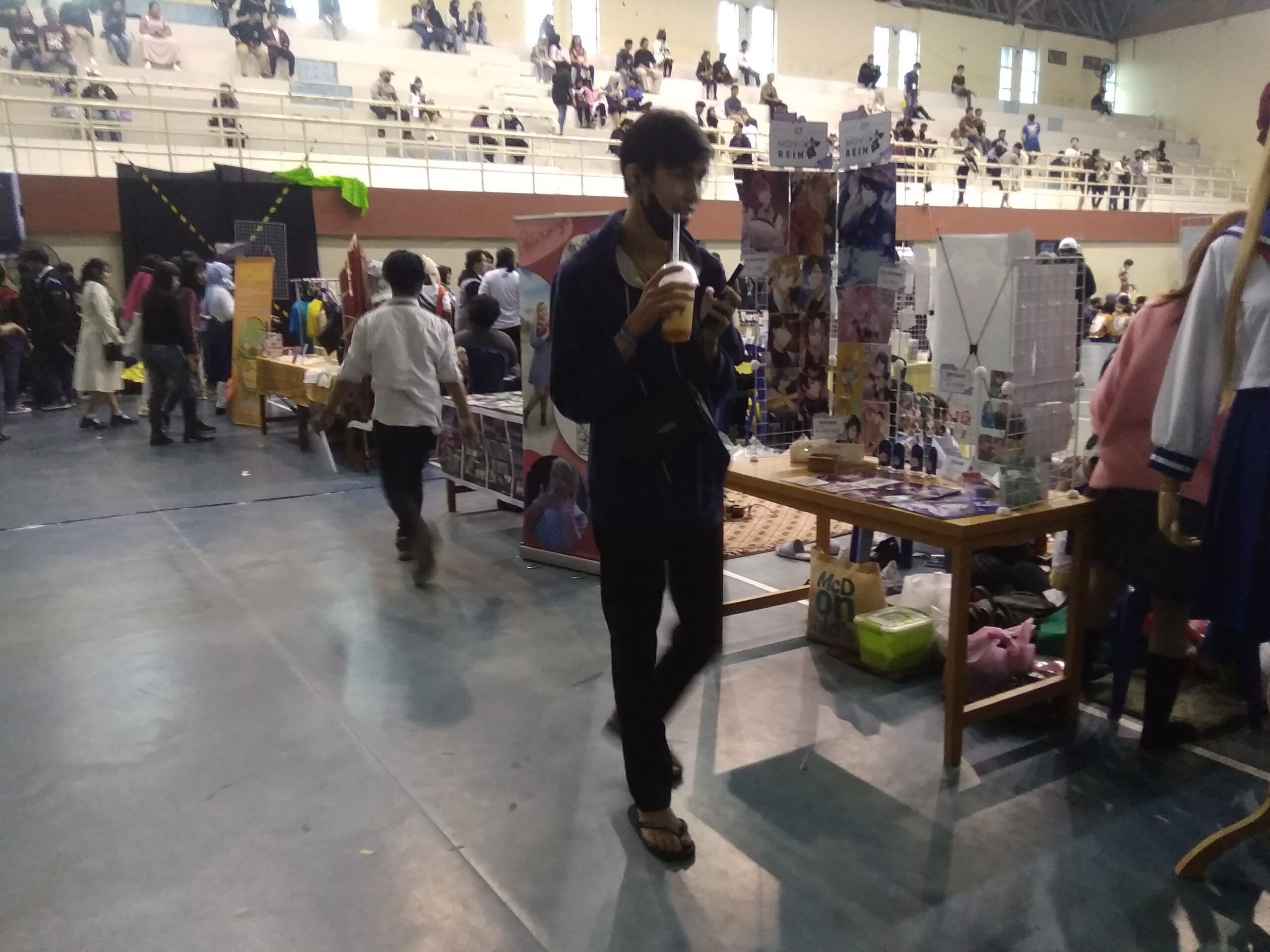 Sebelum acara tersebut dimulai, kami sempat mengunjungi berbagai macam booth-booth konten kreator di event Comecora ini. Mulai dari booth penjualan merchandise hasil buah karya tangan sendiri seperti stickers, gantungan kunci, poster, photo album, baju, kostum cosplay, dan postcard art hasil Commission hingga booth komunitas hobi dan game seperti perkumpulan para pemain game Arknight Indonesia di wilayah Kalimantan Timur, dan perkumpulan TTRPG dan Boardgame Community Roll Indo.