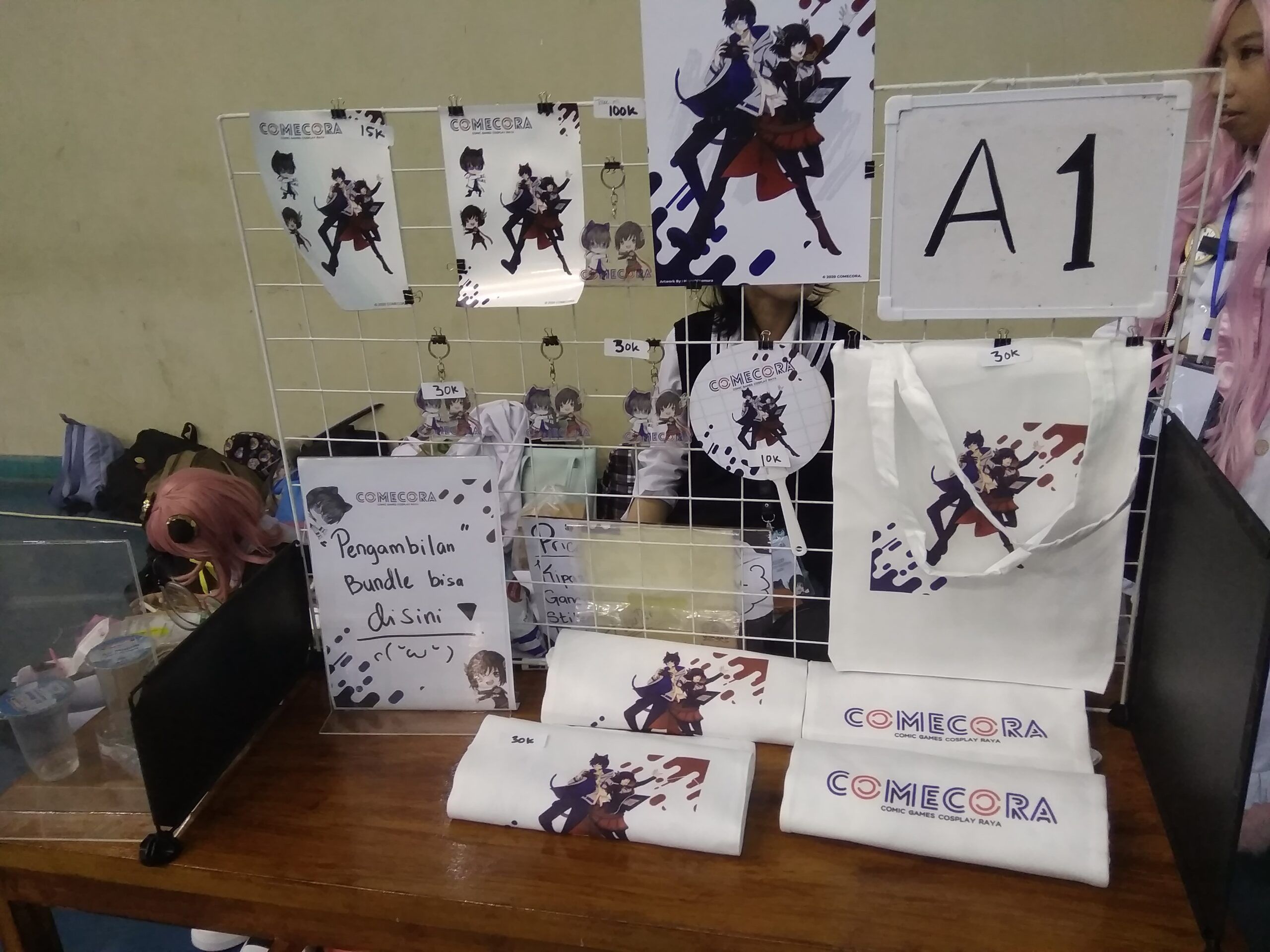 Selanjutnya, kita juga mengunjungi salah satu circle konten kreator lainnya yakni di stand booth penjual merchandise booth Overnight Rush Society. Di sana kami sempat berbincang-bincang sedikit mengenai event Comecora ini dan sama seperti komunitas Roll Indo, Comecora juga merupakan event pertama yang mereka ikuti, dan mungkin jadi event perdana di mana mereka bisa dapat berkumpul bareng dalam satu circle konten kreator.