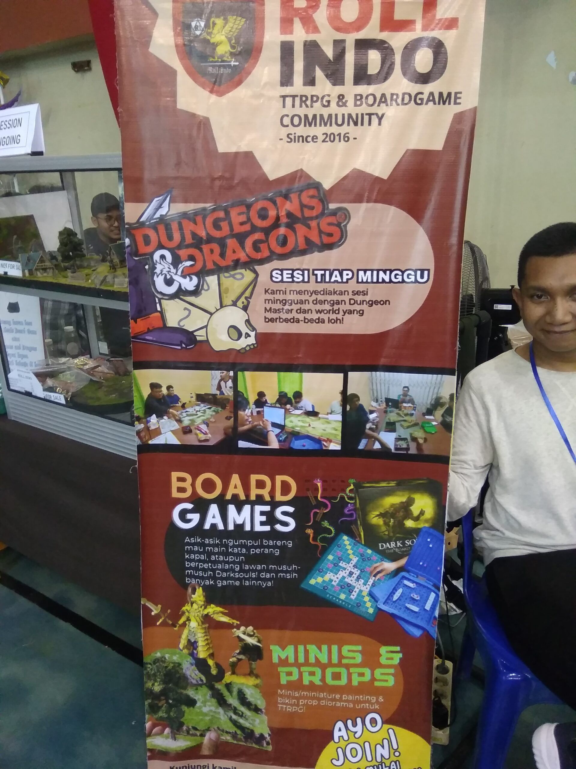 Sebenarnya komunitas ini sudah ada sejak tahun 2016 yang lalu. Namun pada waktu itu hanya sekedar perkumpulan kecil-kecilan saja yang hanya bertujuan untuk saling berbagi kartu deck Yu-Gi-Oh. Tapi seiring dengan berjalannya waktu komunitas ini tumbuh menjadi lebih besar yang pada akhirnya berhasil menciptakan jenis boardgame baru yang lainnya yakni TTRPG. Bahkan boardgame atau dungeon yang mereka buat di depan etalase ini adalah hasil bikinan mereka semua sendiri. Diantara semua replika yang mereka bikin dalam dungeon ini, perpohonan dan rerumputan adalah yang paling sulit untuk dibuat miniaturnya. Untuk informasi mengenai aktivitas dari komunitas Roll Indo ini bisa kalian lihat lewat Instagram mereka di @Roll.Indo