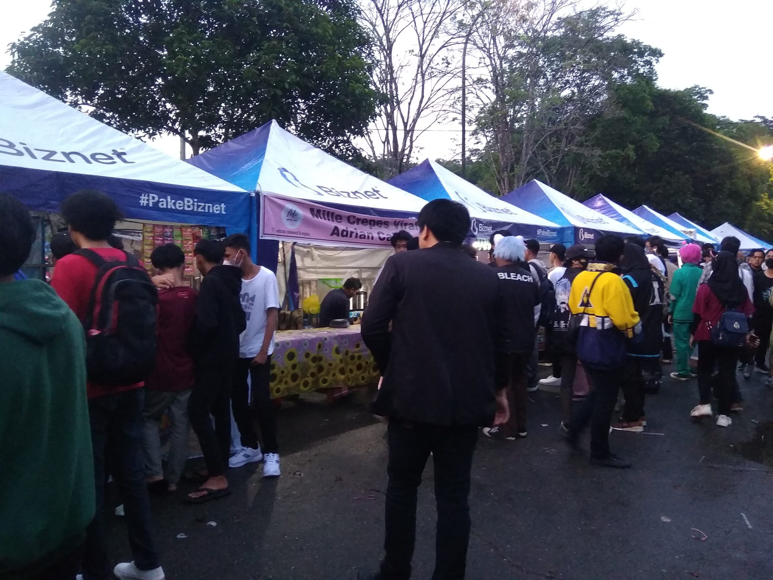 Sebagai tambahan selain tersedia booth merchandise di bagian dalam gedung, di luar gedung pun kamu bisa dapat menemukan booth food court yang cocok untuk kamu yang sedang lapar dan ingin makan mencari snack ataupun minuman. Oh tidak lupa juga bagi kamu yang suka hobi nyanyi di bagian outdoor ini juga tersedia sebuah mini stage yang dibuat oleh komunitas penggemar musik Jepang Kalimantan Rakuon. Di sana kamu bebas bernyanyi karaoke sesuai lagu yang kamu favoritkan. Karaoke ini gratis yang kamu perlukan hanyalah pede di depan umum dan siap berani tampil di hadapan para penonton dan pengunjung di event ini.