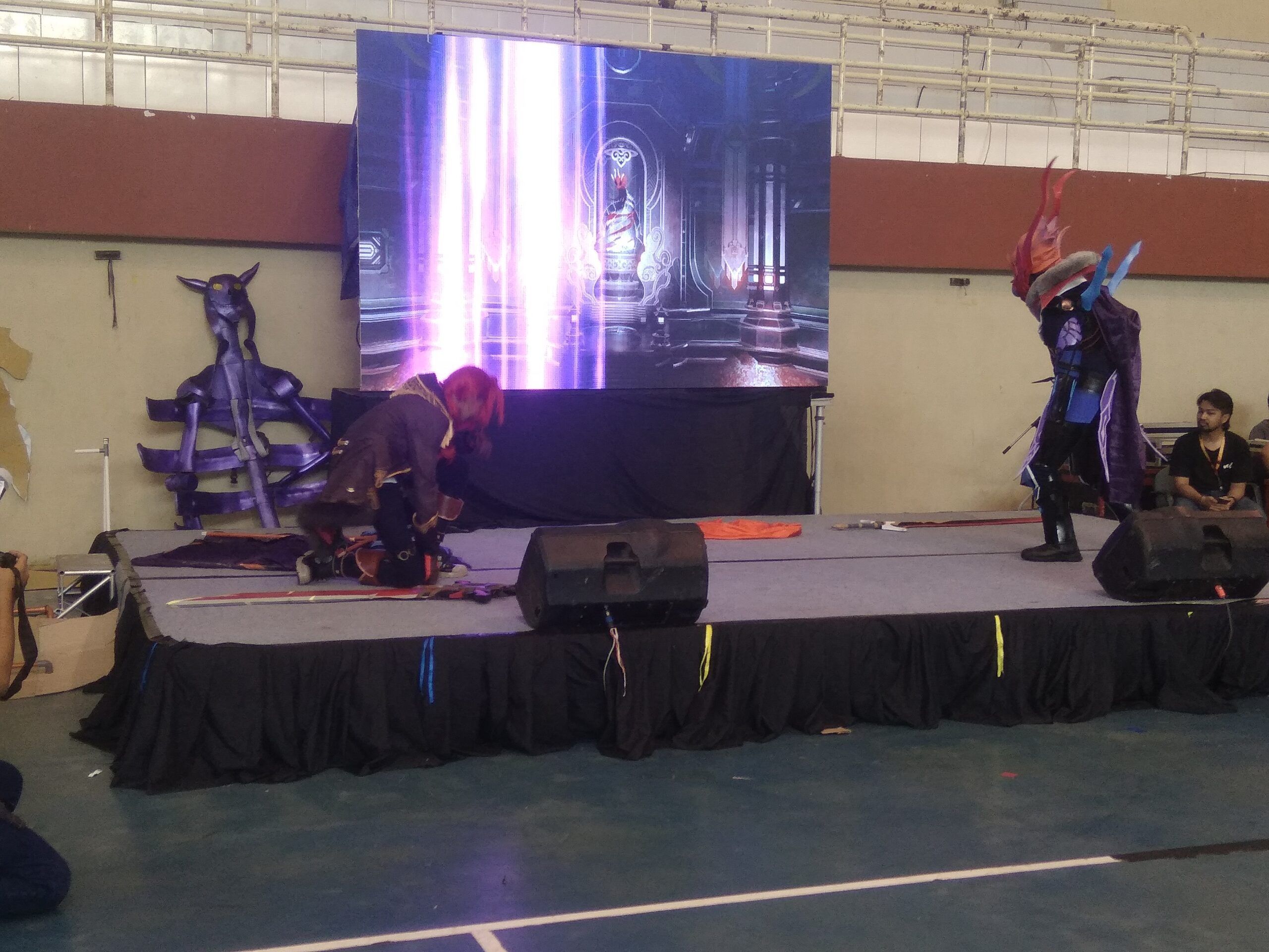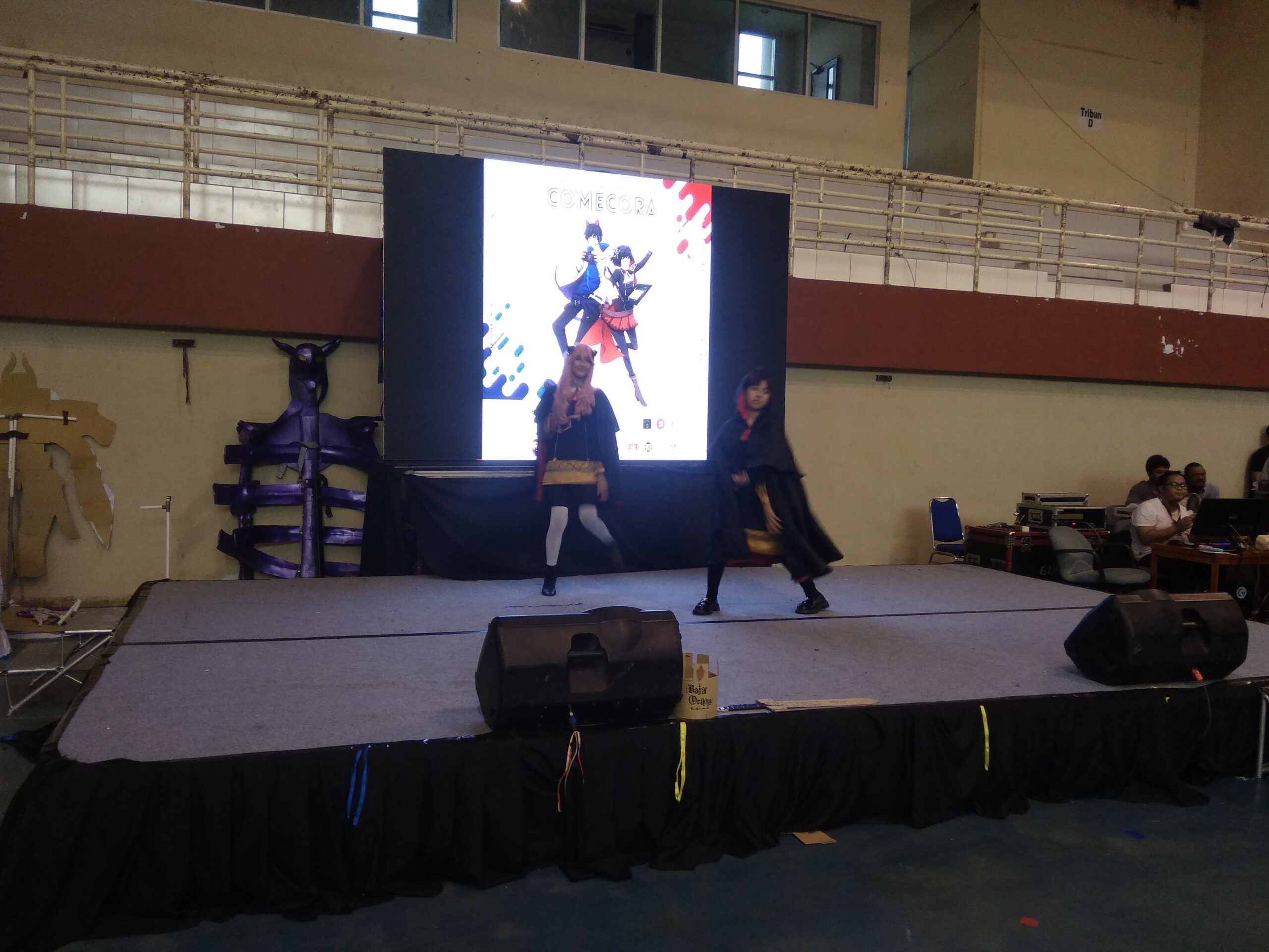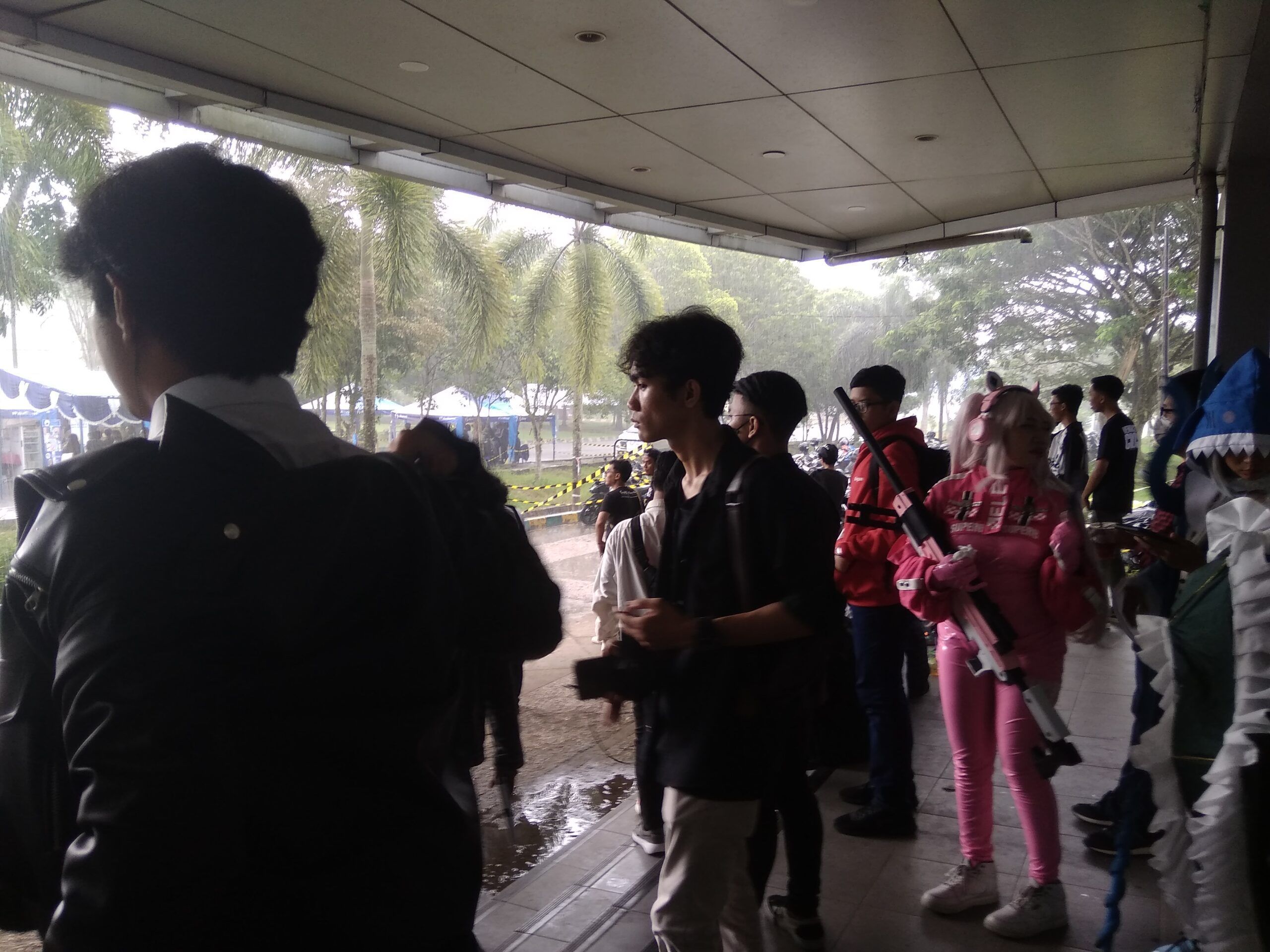 Tibalah kami di hari kedua dari event COMECORA ini yang akan menjadi acara klimaksnya, yang semuanya akan diisi dengan acara lomba Cosplay Competition. Sama seperti di hari pertama, saat kami datang cuaca tidak mendukung dan sempat turun hujan lagi. Namun durasi hujan untuk di hari ini cukup singkat dan tidak terlalu deras seperti di hari pertama. Saat kami sampai, main event Comecora yakni lomba Cosplay Competition akan siap dilaksanakan, masing-masing peserta mulai mempersiapkan diri mulai dari kostum dan beberapa properti yang akan digunakan nanti untuk penampilan di Stage.