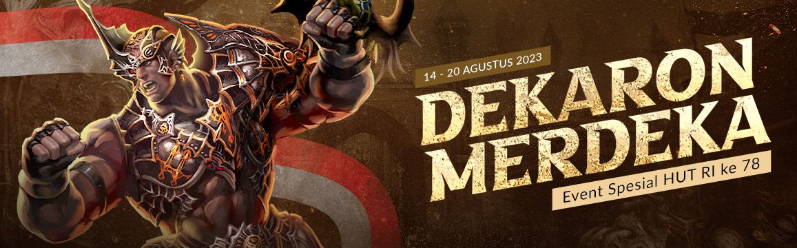 Dalam rangka merayakan hari kemerdekaan Republik Indonesia yang ke-78, game DEKARON INDONESIA tidak lupa memberikan event spesial guna menemani para Dekarons di dunia Trieste. Event dengan tajuk Dekaron Merdeka yang saat ini sedang digelar, memberikan kemudahan Dekarons untuk mempercepat progress karakter kesayangan. Berikut detail event selengkapnya: