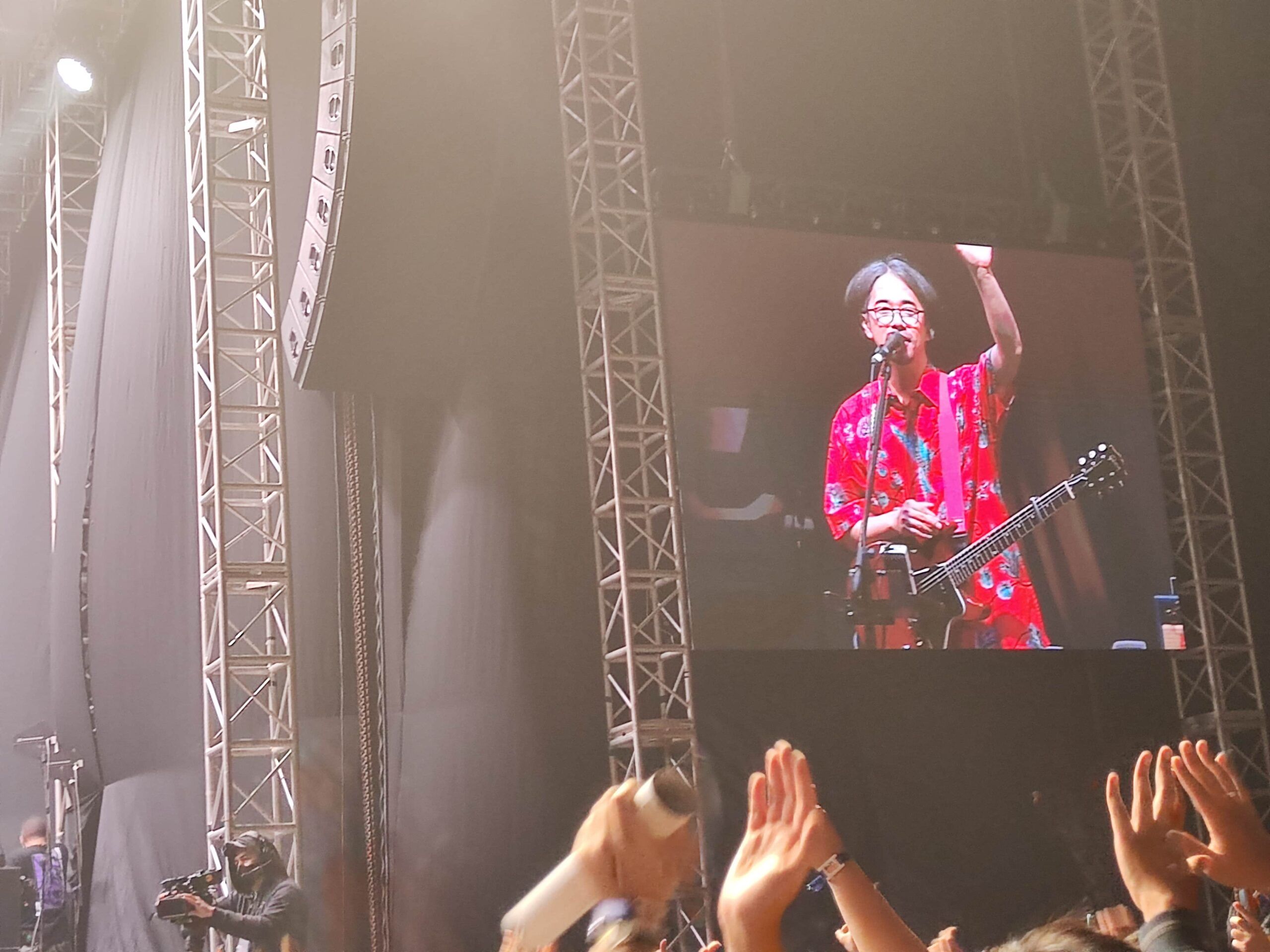 Tepat pada pukul 19.45, kami bergegas untuk memasuki area konser di dalam. Kesan pertama kami di dalam area konser adalah venue-nya luas, sejuk, dan sepertinya cukup untuk menampung seluruh pengunjung. Sesuai ekspetasi, panggungnya sendiri megah dan terdapat 2 layar yang ditujukan untuk para pengunjung yang tidak bisa melihat wajah atau penampilan para personil Asian Kung-Fu Generation dari jauh.