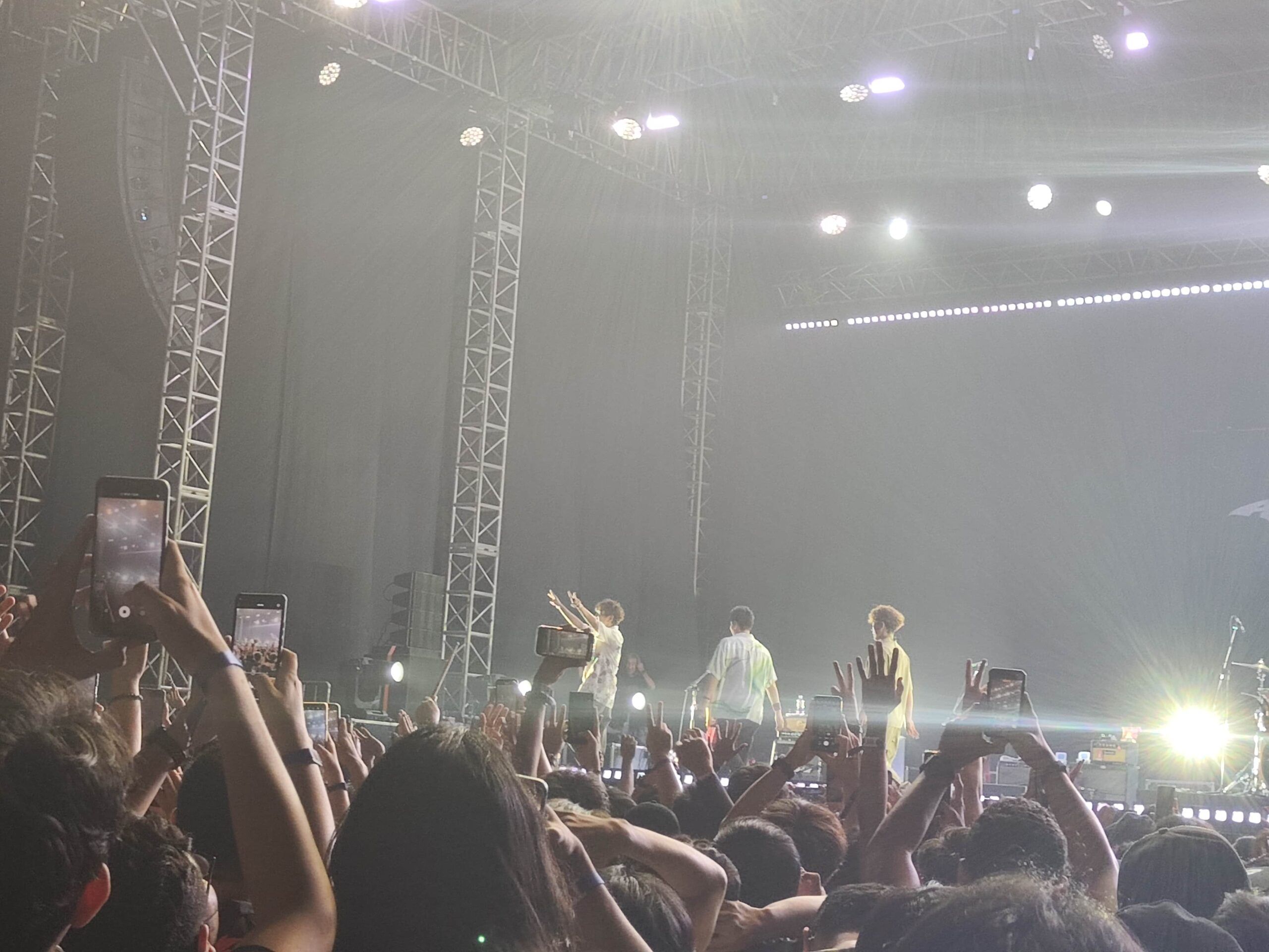 Ketika para personil bandnya naik ke panggung, mereka disambut dengan meriah oleh para penonton di area konser. bersorak-sorai atas kehadiran idolanya di atas panggung. Mereka, para personilnya pun menggunakan setelan yang tidak terduga, sepertinya mereka menggunakan setelan kemeja dengan motif bunga yang terlihat Indonesia, dan dari pengakuan salah satu personilnya di atas panggung, dia baru saja membelinya di Jakarta.