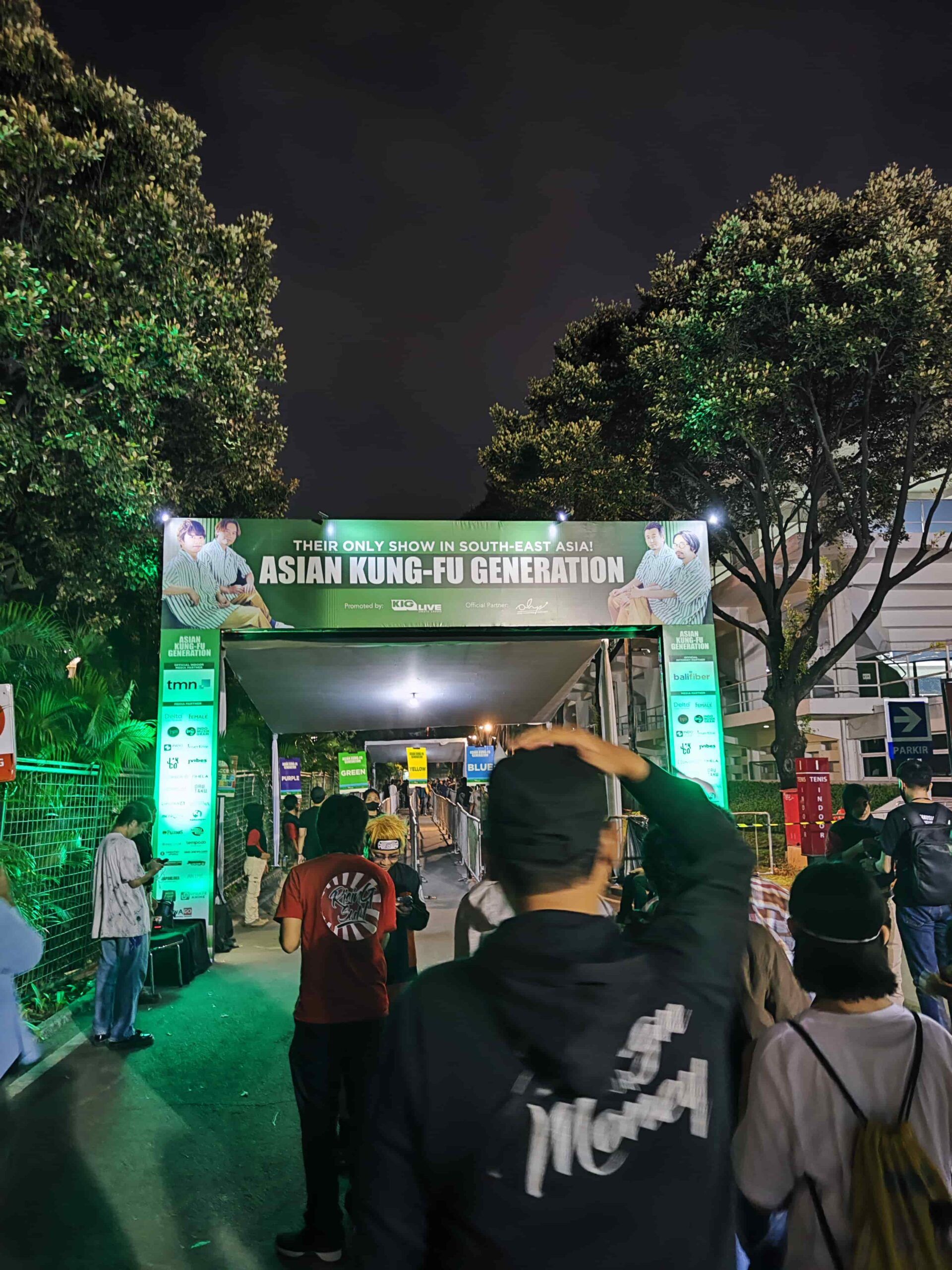 Di dalam area konsernya sendiri sudah banyak pengunjung lain yang memenuhi lapangan di depan venue Tennis Indoor. Di sini terdapat photobooth standee para personil Asian Kung-Fu Generation, yang dimana para pengunjung bisa foto bersama dengan standee tersebut, namun antriannya cukup panjang dan sangat padat, jadi perlu bersabar jika ingin berfoto.