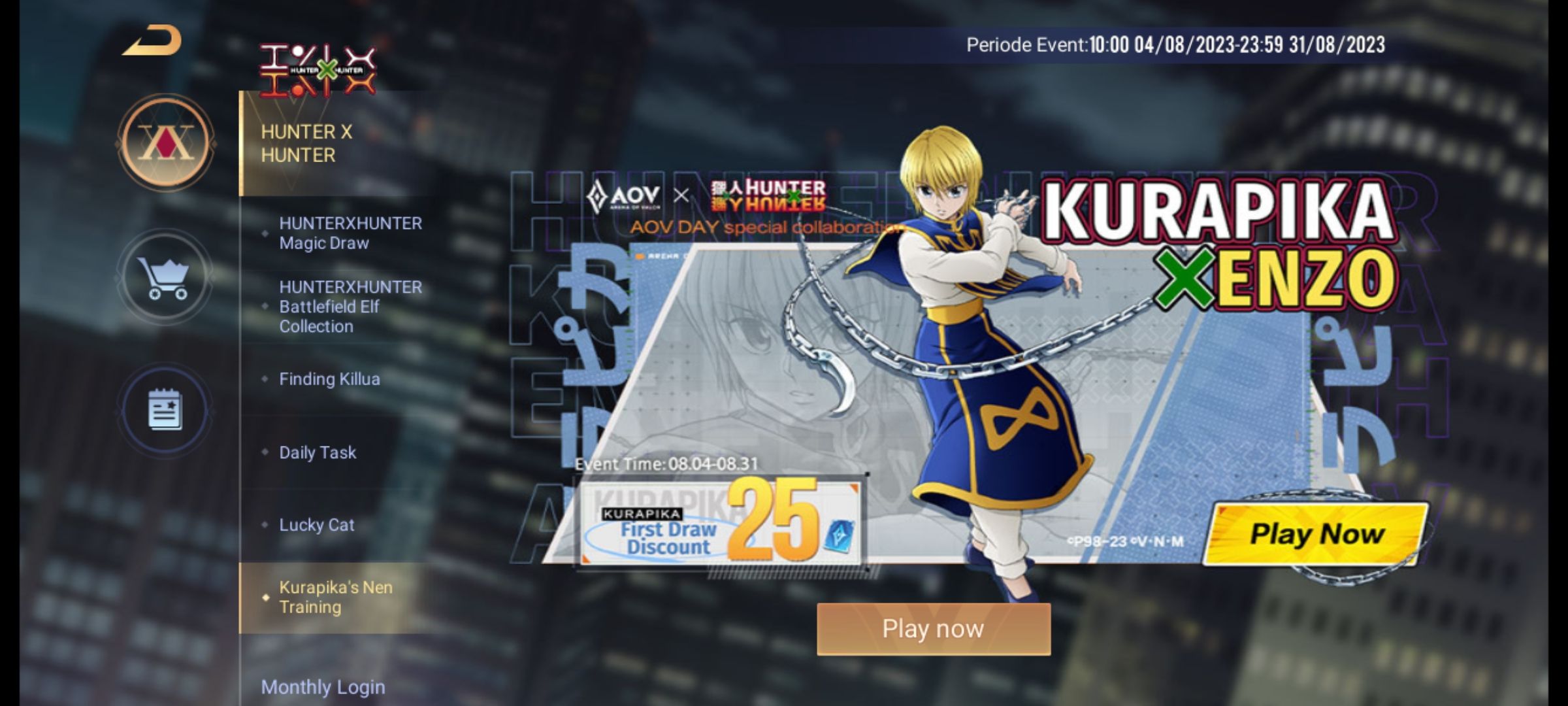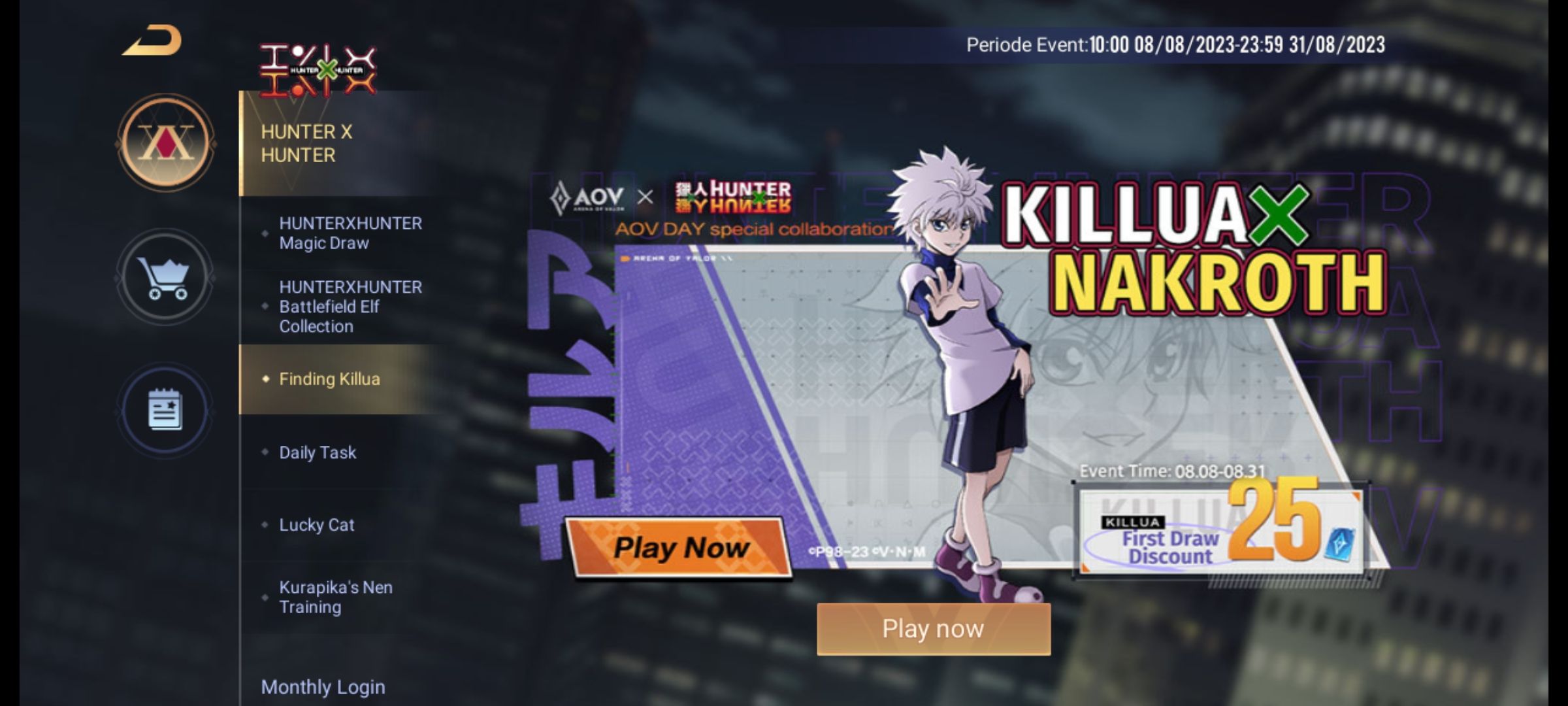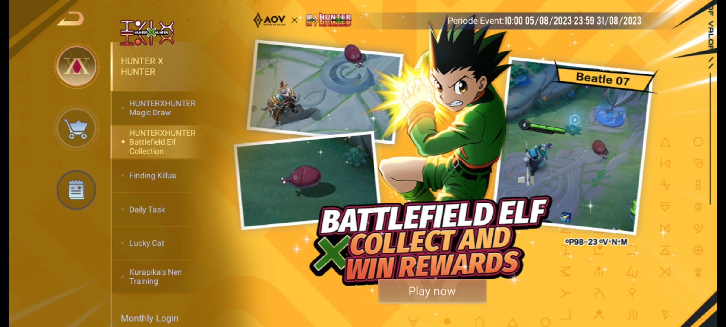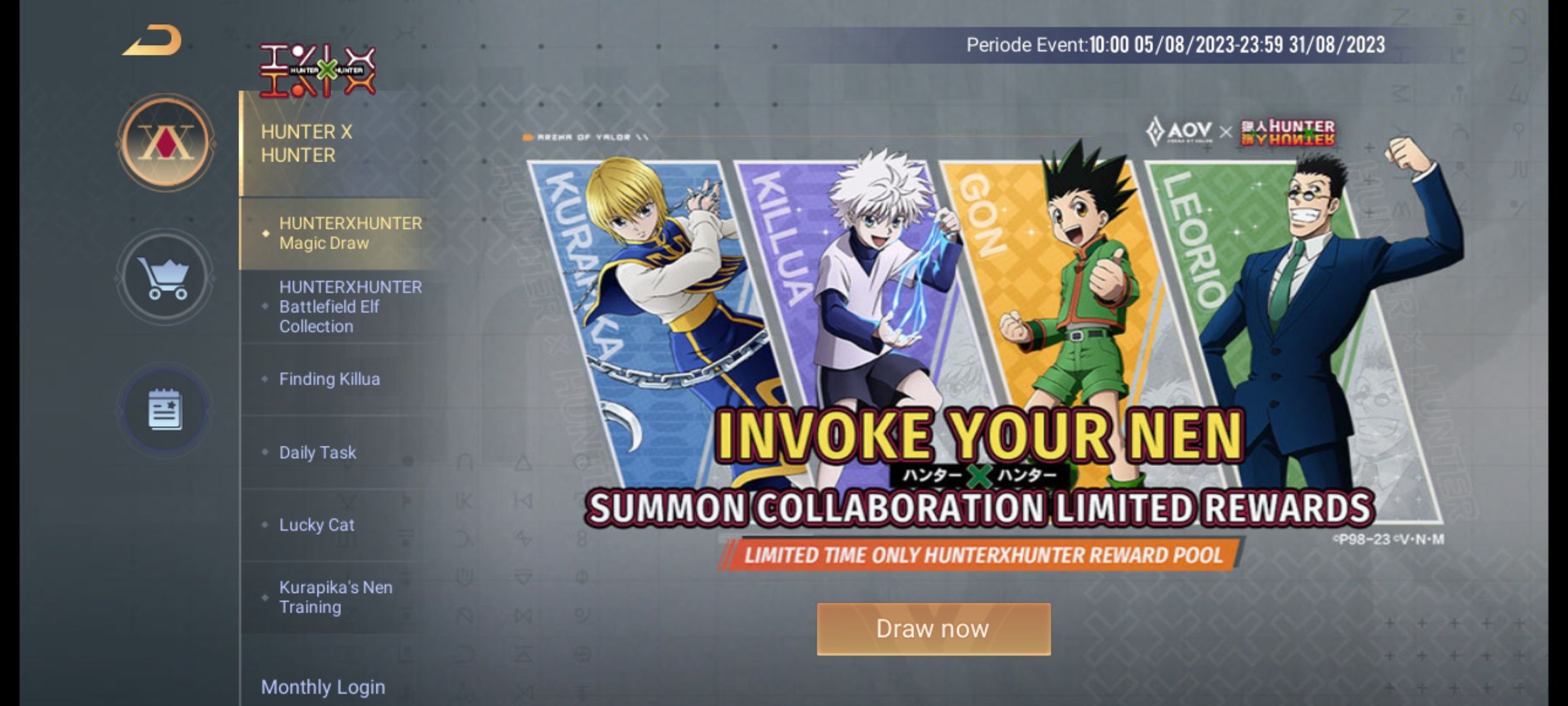 Game MOBA dari Tencent yaitu Arena of Valor (AOV) baru saja berkolaborasi dengan anime Hunter X Hunter. Pada tanggal 24 Juli 2023 melalui akun resmi instagram Arena of Valor baru saja mengumumkan bahwa akan berkolaborasi dengan Hunter X Hunter yang merupakan komik karya Yoshihiro Togashi.
