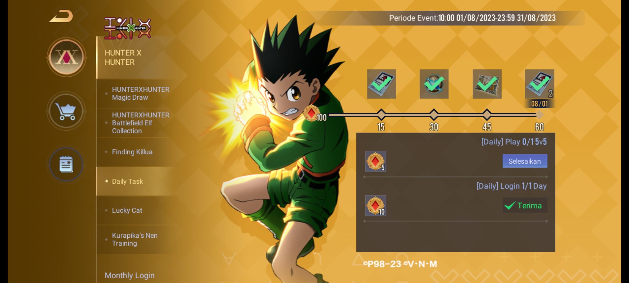 Untuk event tersebut mempunyai banyak sekali hadiah yang akan didapatkan secara gratis. Namun yang paling menonjol dalam event ini adalah skin ekslusif dari Hunter X Hunter. Inilah mereka: