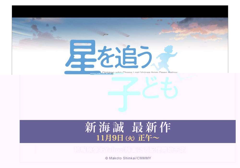 Berdasarkan pengumuman dari Cinema Today, film terbaru karya Shinkai Makoto, "Hoshi o Ou Kodomo" atau "Children who Chase Lost Voices from Deep Below" (judul resmi dalam Bahasa Inggris) akan tayang pada 2011.