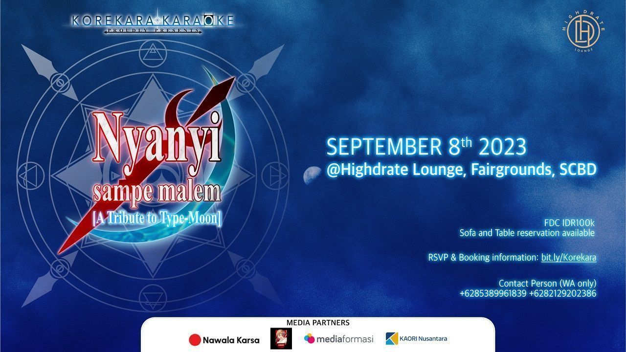 Komunitas Korekara Karaoke kembali hadir mempersembahkan event terbarunya pada bulan September 2023. Pada event ke-8 ini, komunitas yang dibentuk sejak tahun 2019 ini mengusung tema “Nyanyi/Sampe Malem”. Event ini diselenggarakan pada tanggal 8 September 2023 bertempat di Highdrate Lounge, Fairgrounds, SCBD, Jakarta Selatan.