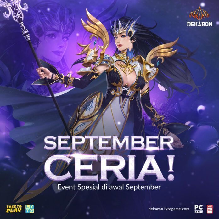 Bulan September kini telah tiba, dan tim game DEKARON INDONESIA dengan gembira mengumumkan adanya event spesial untuk membantu para pemain Dekaron dalam petualangan mereka di dunia Trieste. Event yang diberi nama September Ceria ini menawarkan bonus peningkatan tingkat pengalaman (EXP rate-up) dan item spesial bagi para Dekaron yang melakukan login. Berikut adalah informasi lengkap mengenai event ini: