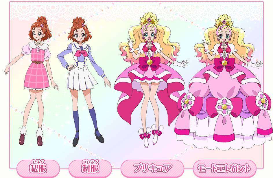 Haruka Haruno, disuarakan oleh Yu Shimamura (Annie Leonhardt dari Shingeki no Kyojin), bertransformasi menjadi Cure Flora yang merupakan ‘Putri Bunga’. Haruka yang berusia 13 tahun selalu bermimpi untuk menjadi seorang putri sejak kecil, seperti di buku bergambar.