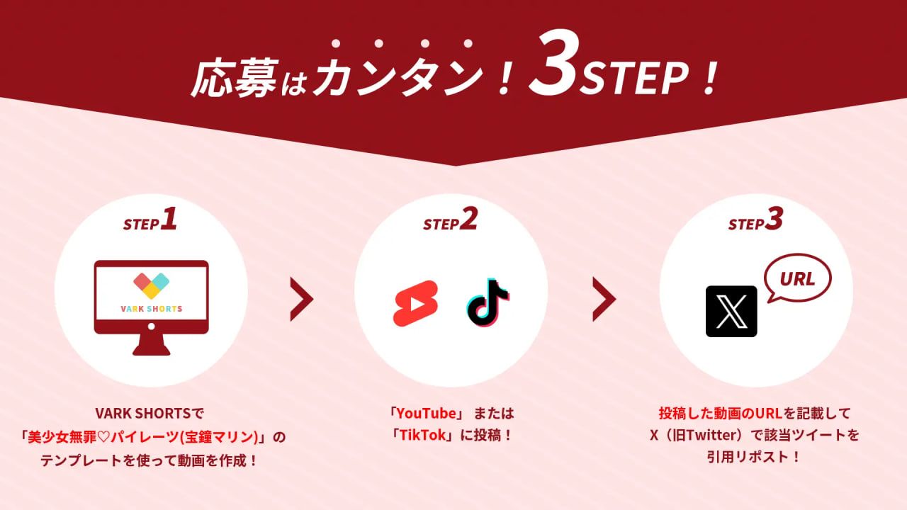 Dalam kolaborasi ini, Houshou Marine hadir dalam bentuk template yang dapat digunakan oleh pengguna VARK SHORTS. Pengguna dapat memilih avatar VRM mereka sendiri dan menari bersama Houshou Marine dalam lagu “Beautiful Girl Innocent Pirates.” Melalui aplikasi VARK SHORTS, pengguna dapat dengan mudah membuat video pendek yang menampilkan kemampuan menari dan kreativitas mereka.