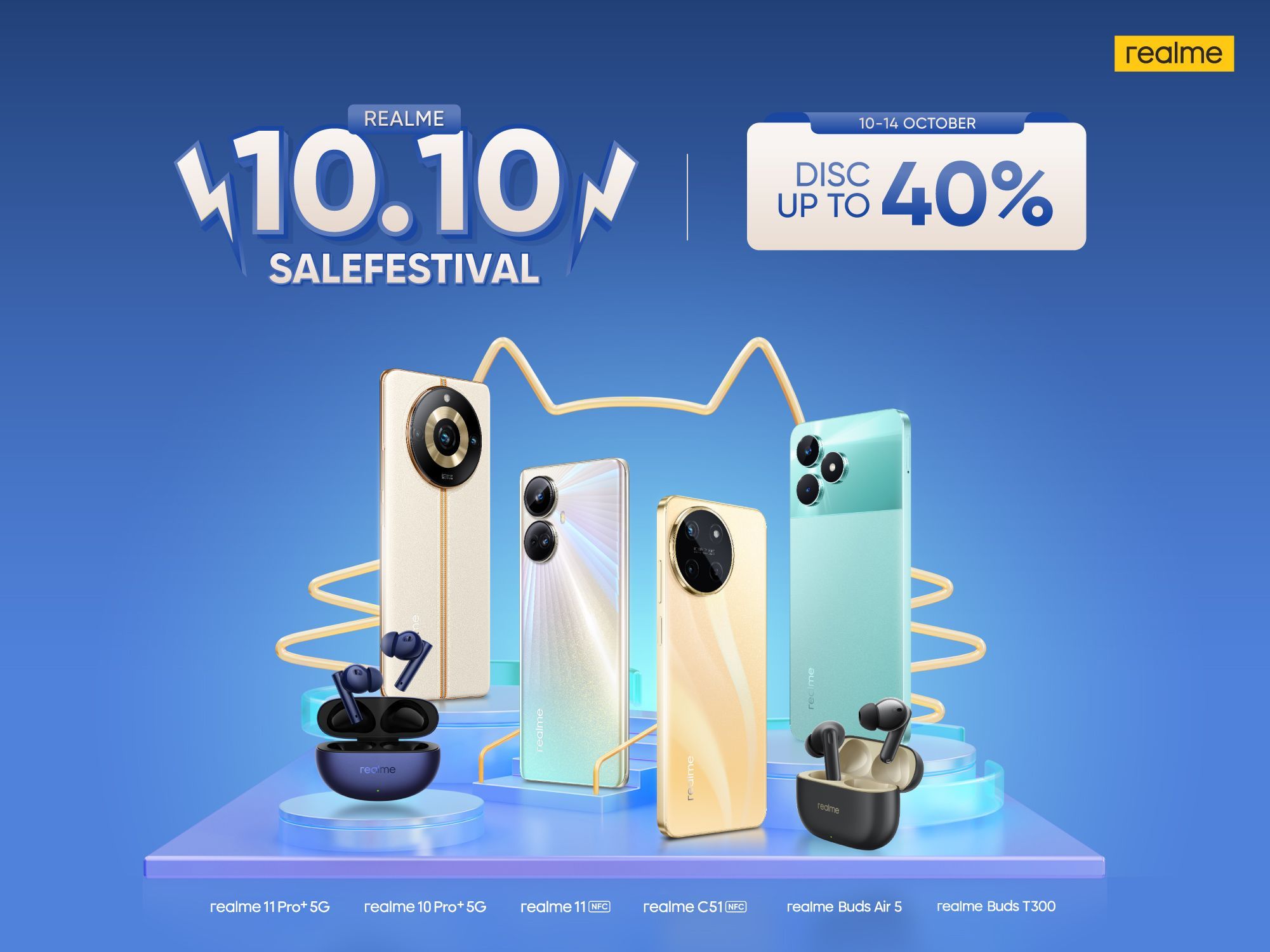 realme, brand Favoritnya Anak Muda kembali menghadirkan kejutan bagi para konsumen di Indonesia, melalui gelaran 10.10 SALEFESTIVAL di berbagai platform e-commerce populer di Indonesia dengan potongan harga hingga 1,5 juta rupiah dan diskon hingga 40%. Momen 10.10 SALEFESTIVAL akan menjadi waktu yang paling tepat bagi para pelanggan untuk mendapatkan berbagai produk unggulan dari realme mulai dari smartphone hingga AIoT. Promo ini akan tersedia selama empat hari pada 10-14 Oktober 2023, di mana akan menjadi kesempatan terbaik bagi anak muda untuk dapat memiliki produk realme impian dengan penawaran harga terbaik.