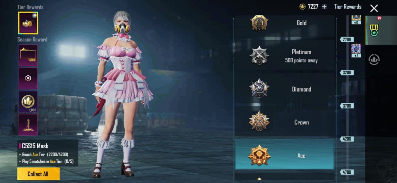 Ace Master adalah salah satu rank tertinggi di PUBG MOBILE yang tentunya sulit untuk dicapai. Jika berhasil menyelesaikan tantangan ini, pemain akan mendapatkan hadiah skin rambut wanita C5S15 Cover, juga hadiah tambahan C5S15 Ace Master Title, Name Tag, efek spesial team-up, dan 1000 Season Token.