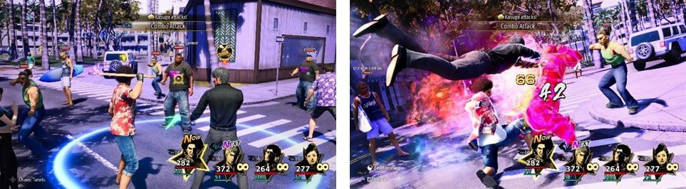 Selama pertempuran di Like a Dragon: Infinite Wealth, ketika kamu bergerak dalam jangkauan sekutu yang memiliki ikatan kuat denganmu, kamu akan dapat melakukan serangan kombo yang kuat. Kerjasama antara sekutu-selamanya kunci untuk mengalahkan musuh yang tangguh, jadi pastikan untuk memperdalam ikatan dengan mereka dan manfaatkan serangan kombo mereka.