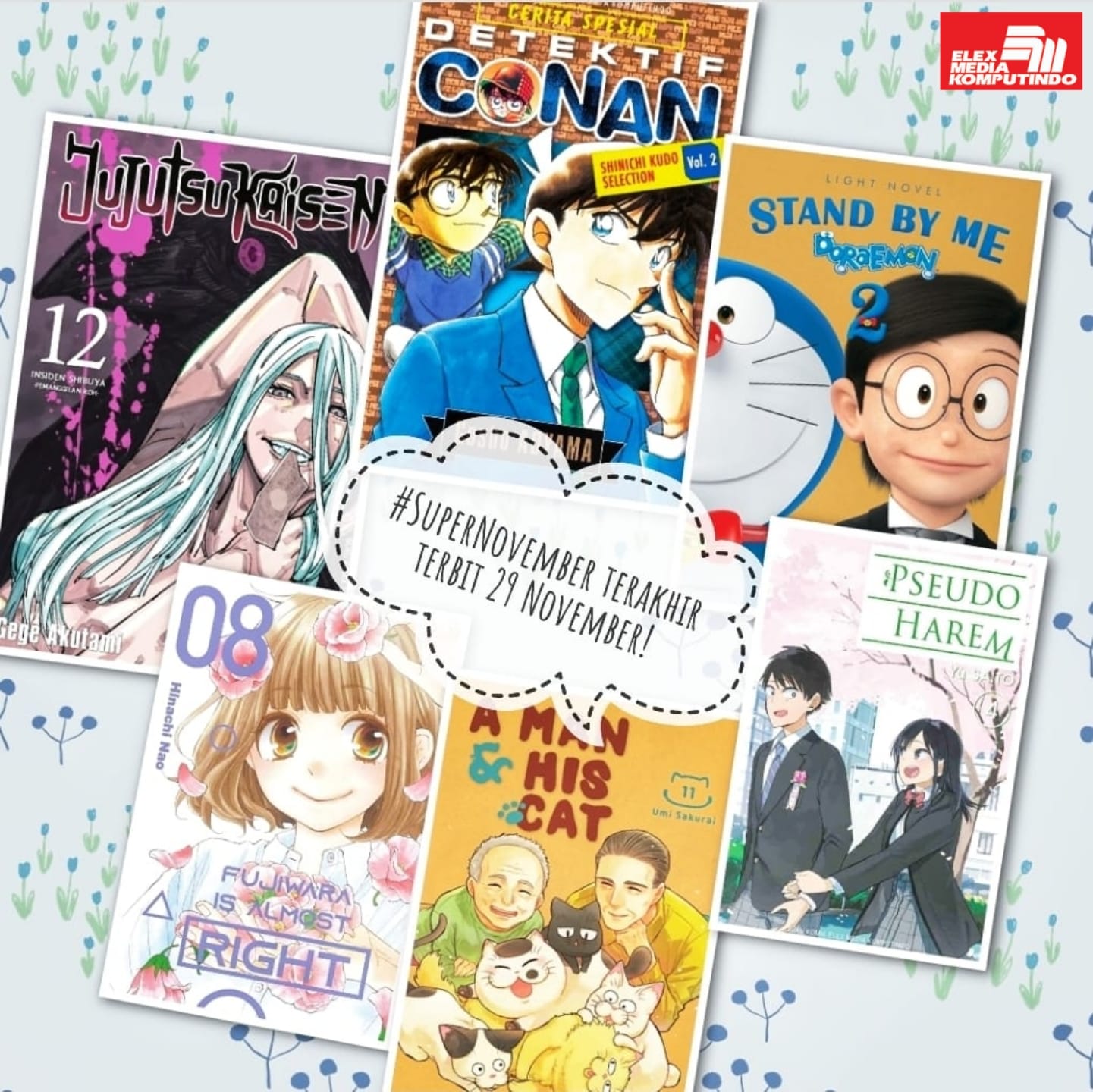 Melalui akun media sosialnya, penerbit Elex Media Komputindo memberikan bocoran mengenai sejumlah komik yang rencananya akan diterbitkan pada minggu terakhir dari bulan November 2023. Beberapa komik ada yang merupakan seri atau volume baru ataupun seri yang diterbitkan ulang, dan jika tidak ada halangan, maka komik-komik ini akan terbit sekitar tanggal 22 November 2023. Inilah bocoran komik November 2023 (minggu terakhir):