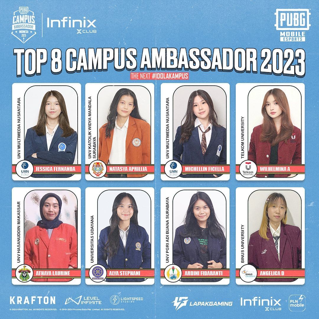 Seluruh mahasiswa/i yang berpartisipasi akan dinilai melalui sejumlah kriteria untuk menentukan siapa yang akan menyandang gelar PUBG MOBILE Campus Ambassador 2023, mendapatkan kesempatan untuk memenangkan hadiah uang tunai dan kontrak eksklusif dengan Infinix. Komunitas juga dapat menyumbangkan suara mereka dengan berpartisipasi dalam Ambassador Vote melalui tautan berikut.