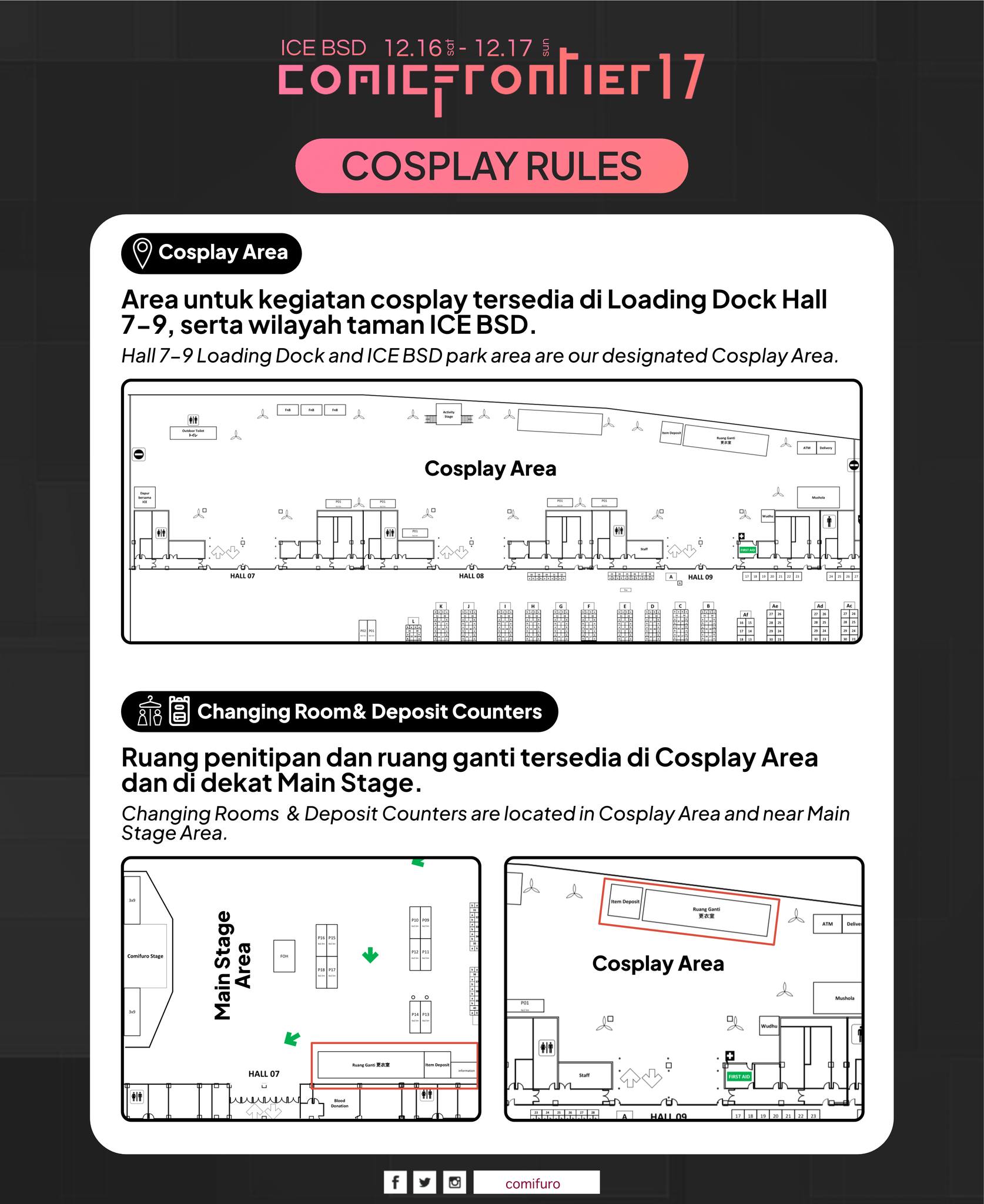 Comifuro 17 mendukung kegiatan cosplayer dengan menyiapkan fasilitas tambahan. Fasilitas seperti Ruang Ganti bisa digunakan oleh semua pengunjung termasuk Cosplayer. Ada 2 (dua) Ruang Ganti yang tersedia yaitu di Loading Dock Hall 9 dan di dekat Main Stage. Ruang Ganti bisa digunakan dengan biaya tambahan sebesar Rp10.000.
