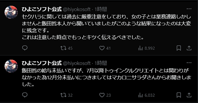 Sebuah berita hangat muncul di X pada 28 Desember 2023. Sebuah brand novel visual bernama Hiyoko Soft yang terkenal degan karya novel visual seperti Kieta Sekai to Tsuki to Shoujo diduga tengah mengalami gonjang-ganjing.
